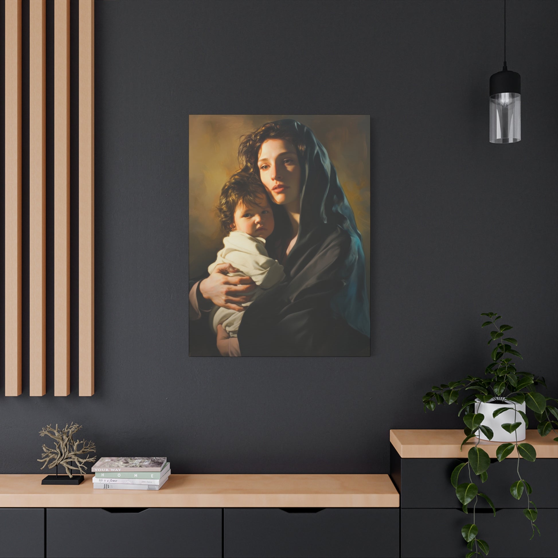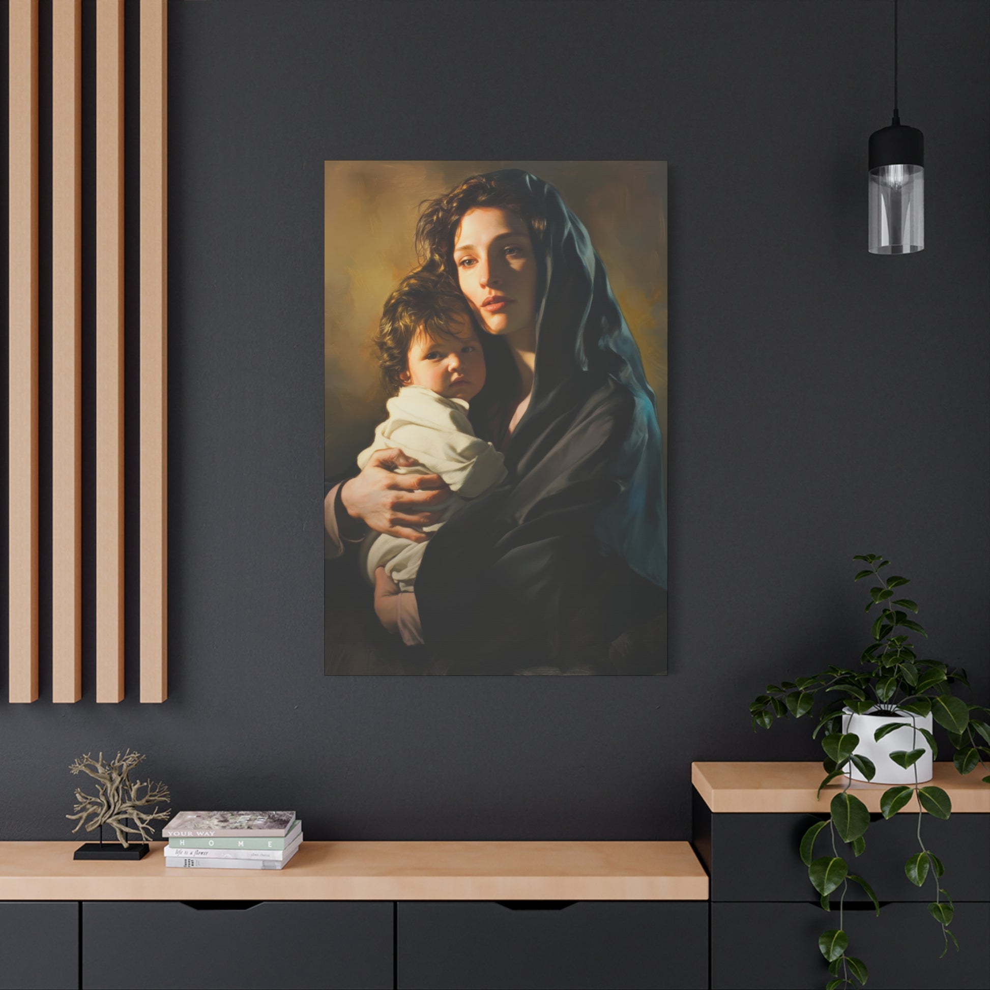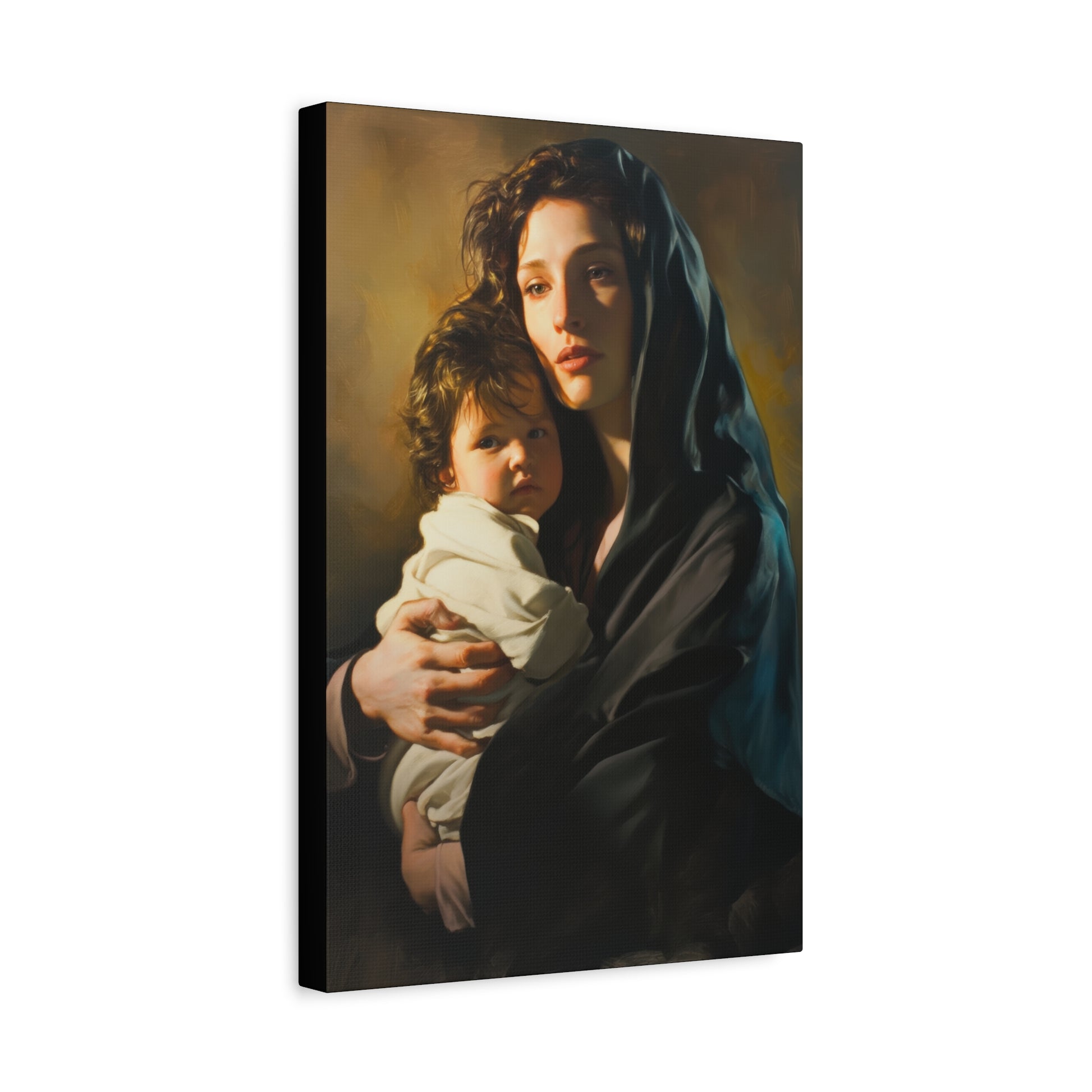 A mother's Gentle Embrace - Mary and The Christ Child - Museum Wrapped Canvas - Print - Religious Art for your Home - Catholic Saint Art