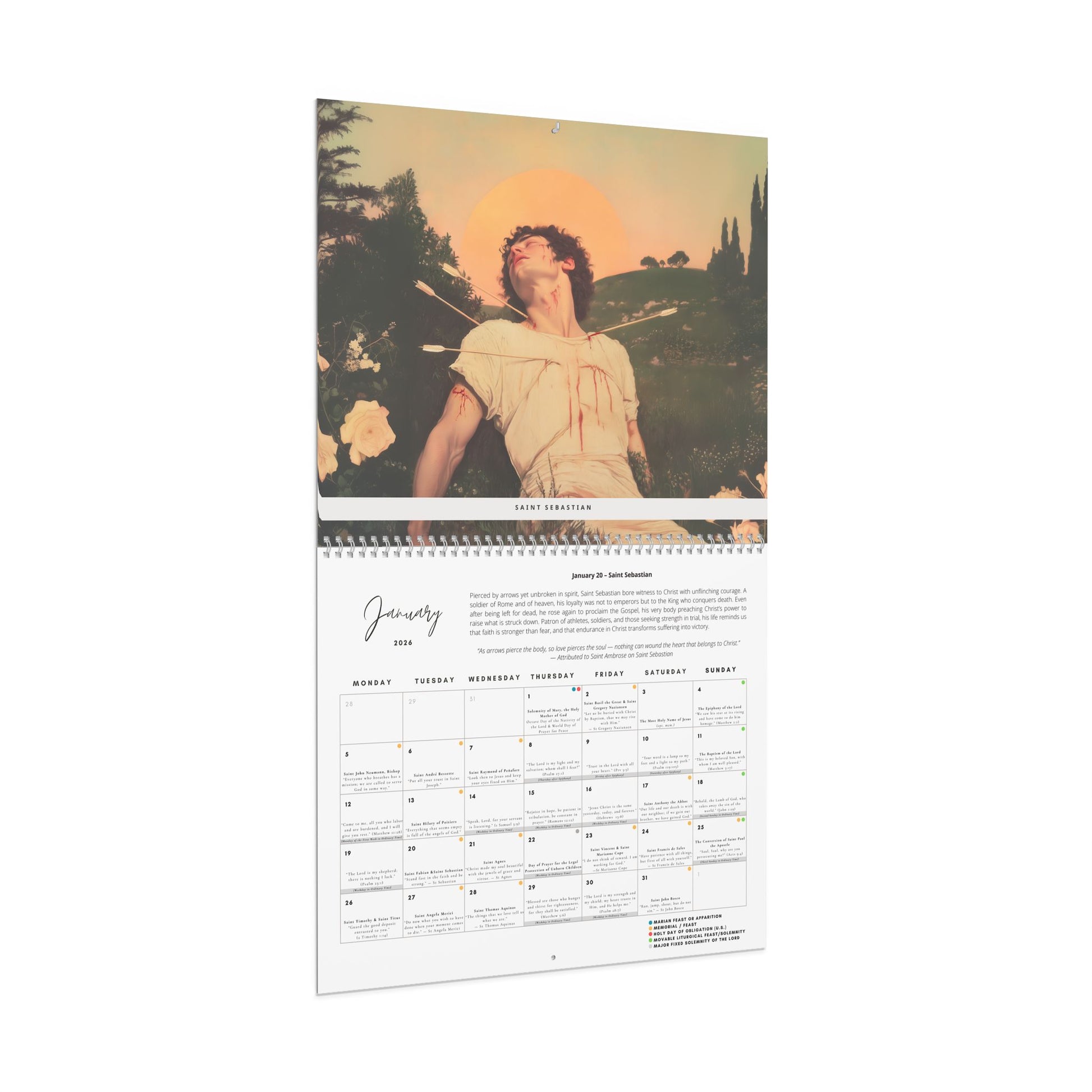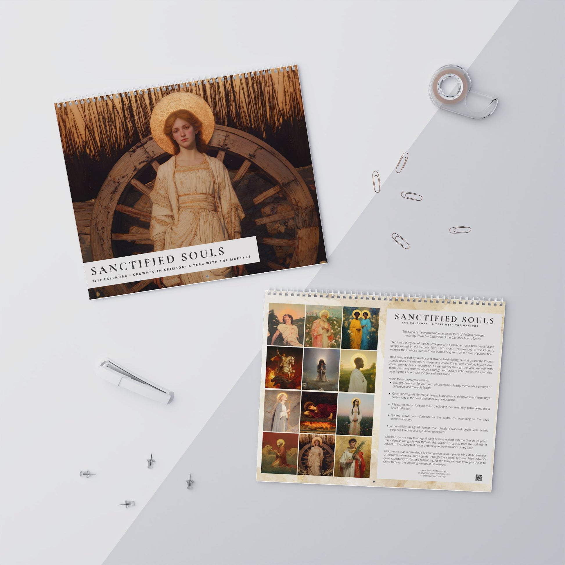 Step into the rhythm of the Church’s year with a calendar that is both beautiful and deeply rooted in the Catholic faith. Each month features one of the Church’s martyrs, those whose love for Christ burned brighter than the fires of persecution. Their lives, sealed by sacrifice and crowned with fidelity, remind us that the Church stands upon the witness of those who chose Christ over comfort, heaven over earth, eternity over compromise. As we journey through the year, we walk with them, men and women whose courage and prayers echo across the centuries, watering the Church with the grace of their blood.