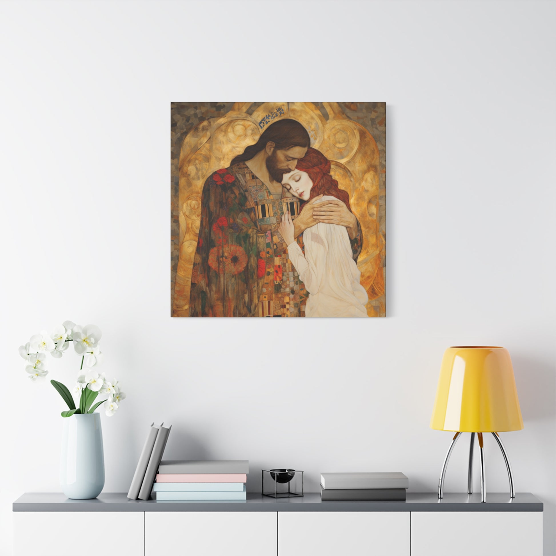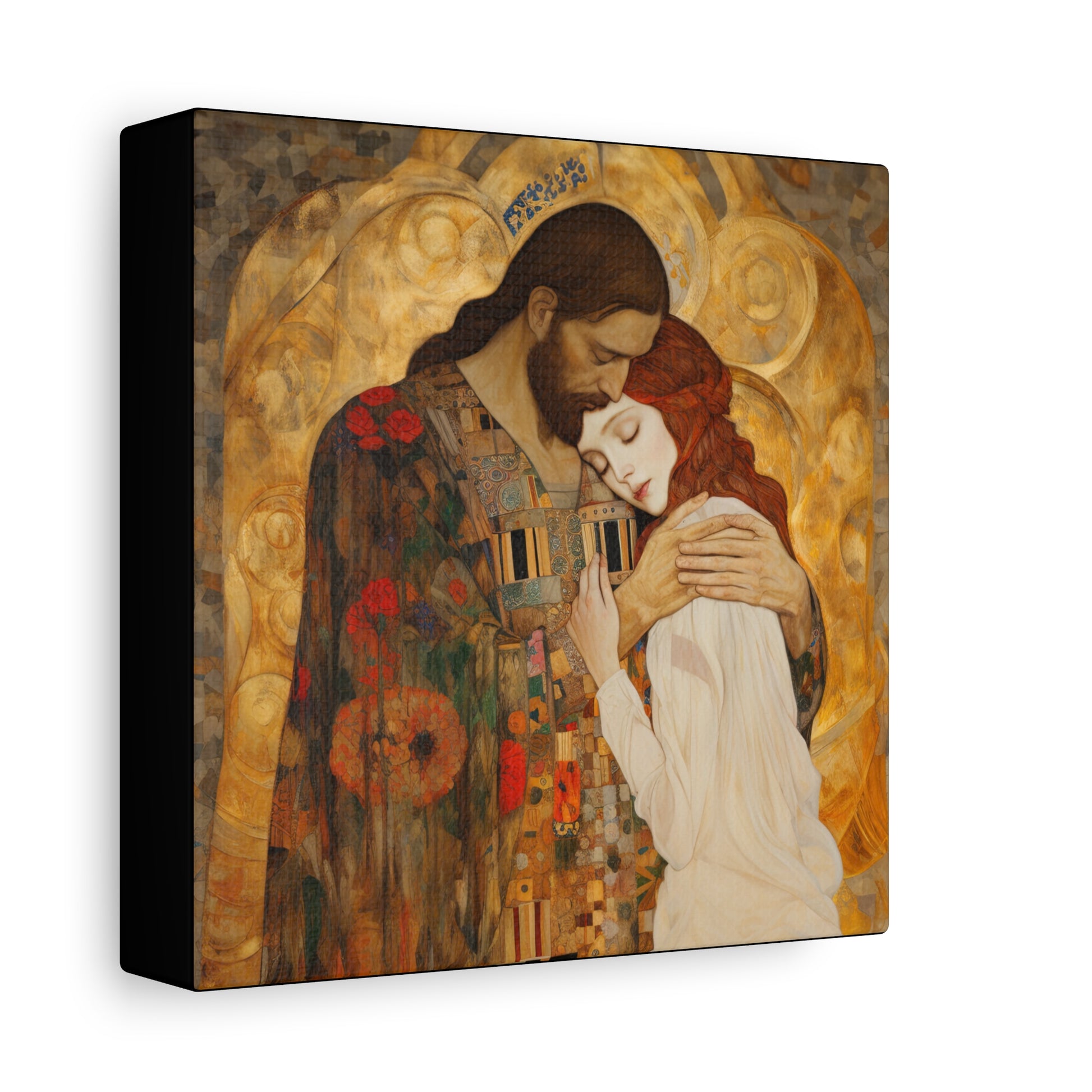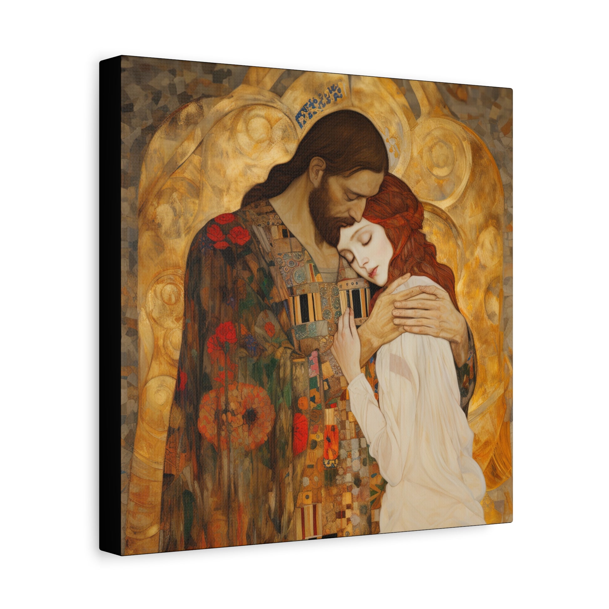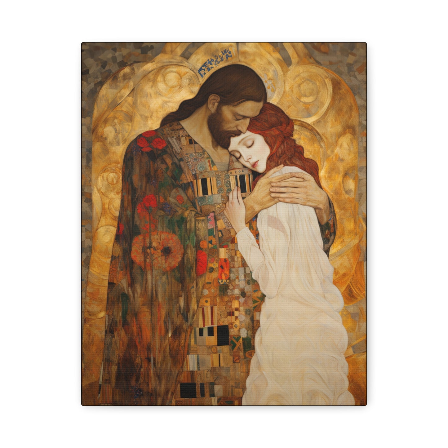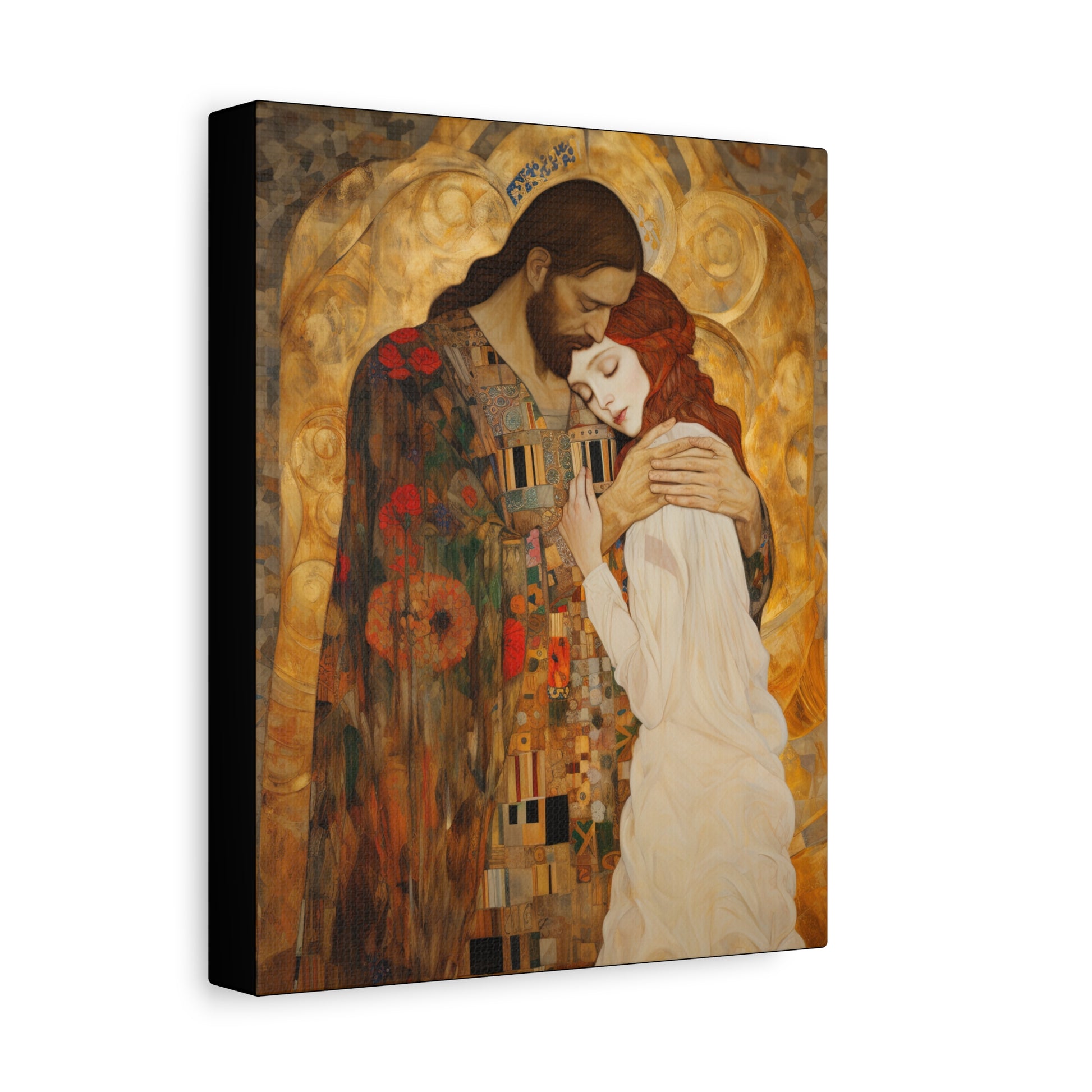 Christ Embracing Mary Magdalene Museum Wrapped Canvas - Sanctified Souls Print -Based on Klimt's The Kiss - Religious Catholic Art