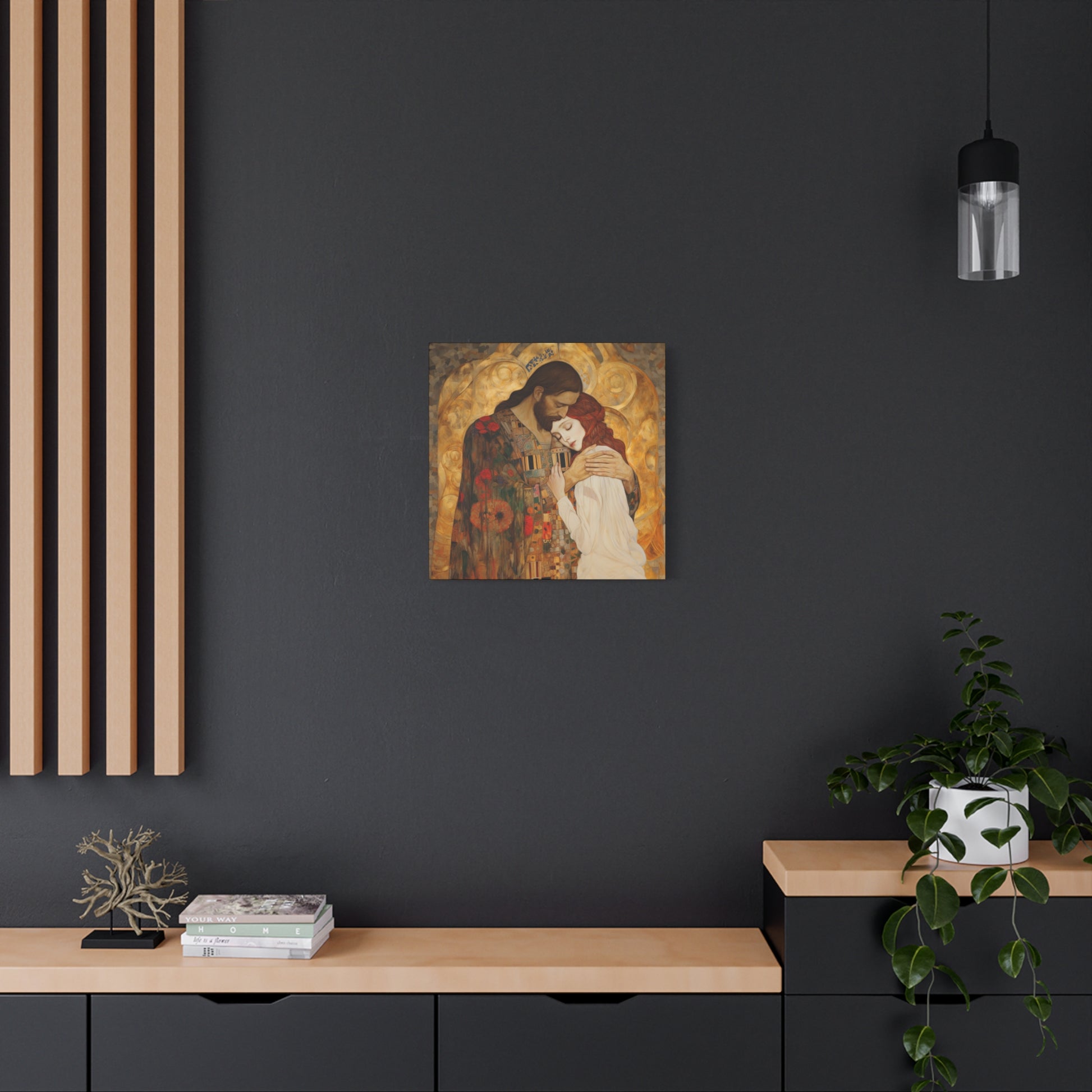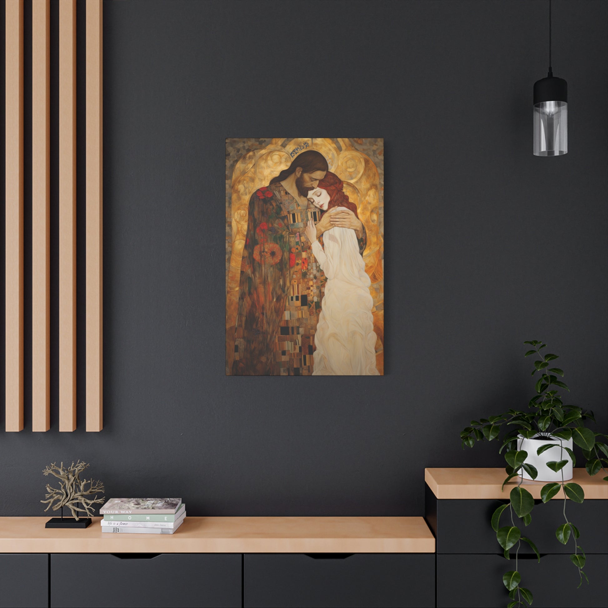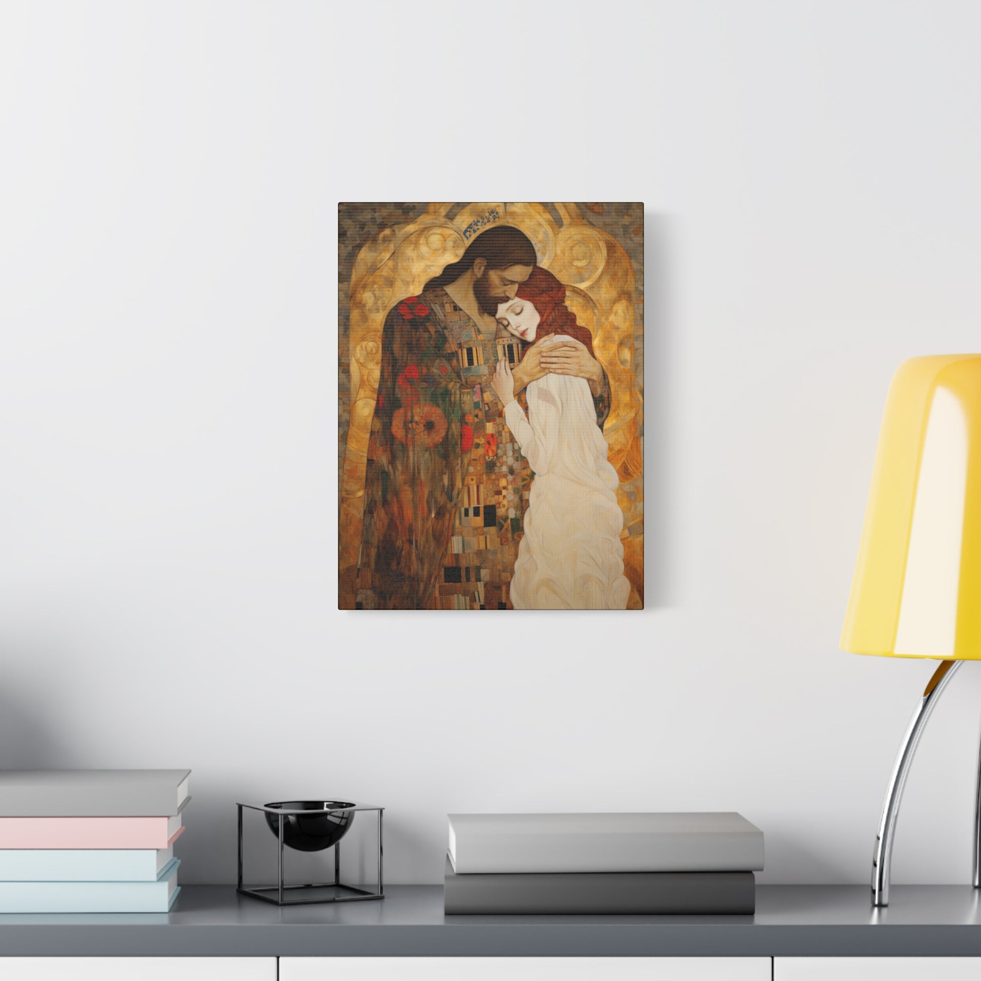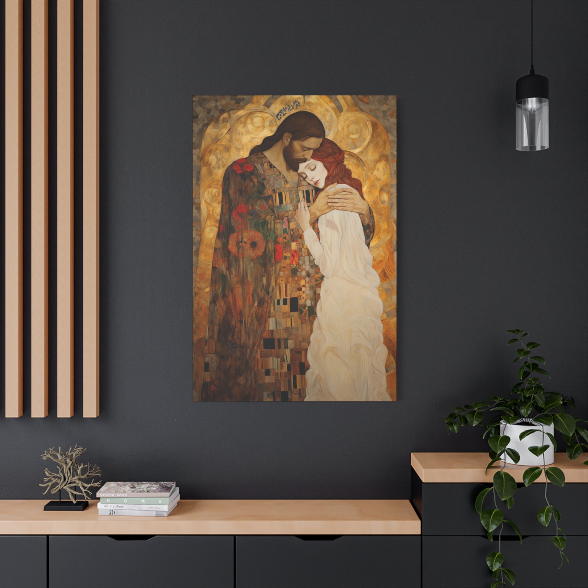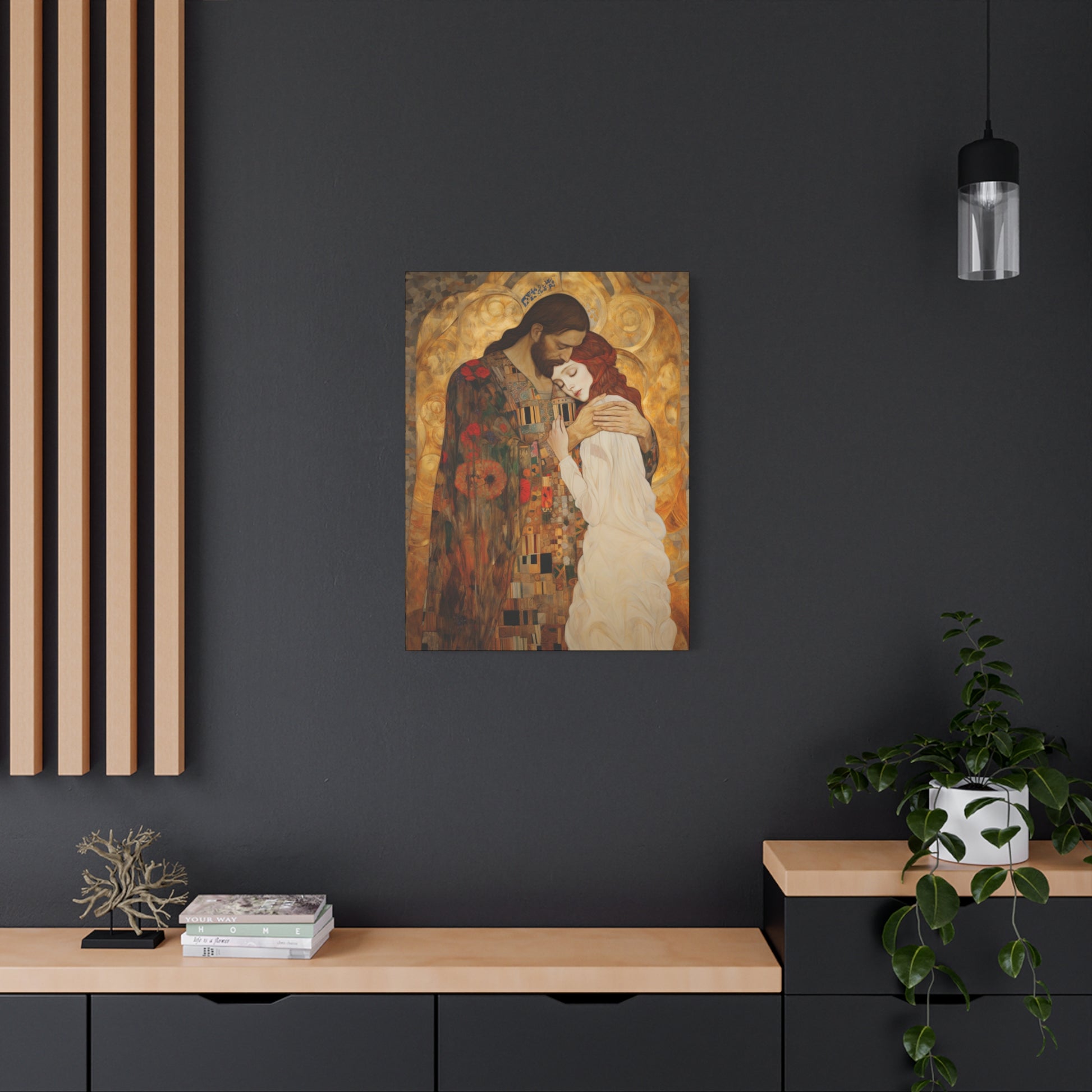 Christ Embracing Mary Magdalene Museum Wrapped Canvas - Sanctified Souls Print -Based on Klimt's The Kiss - Religious Catholic Art