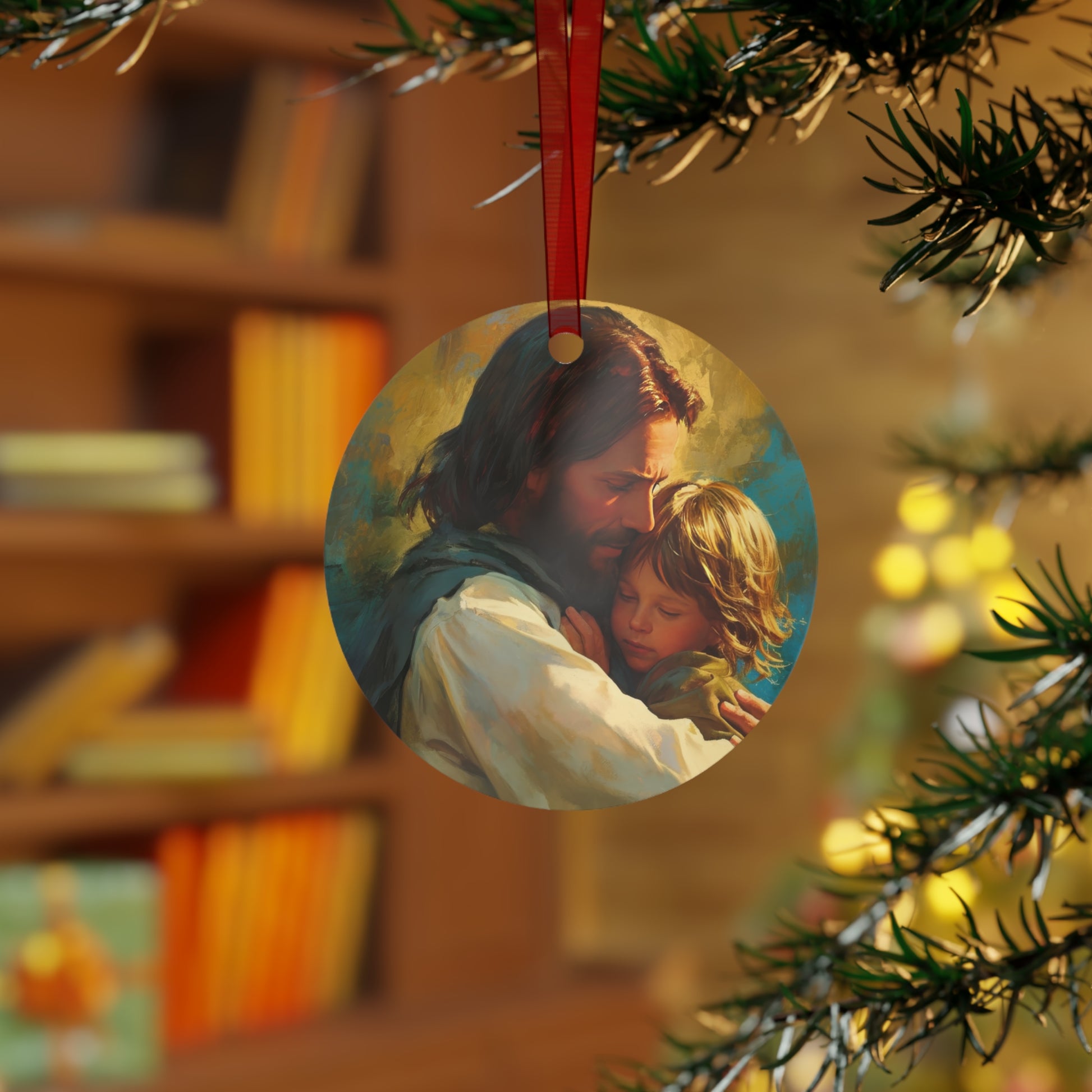 Christ's Compassionate Embrace Metal Ornament - Religious Holiday Christmas Ornament and Keepsake - Catholic Keepsake