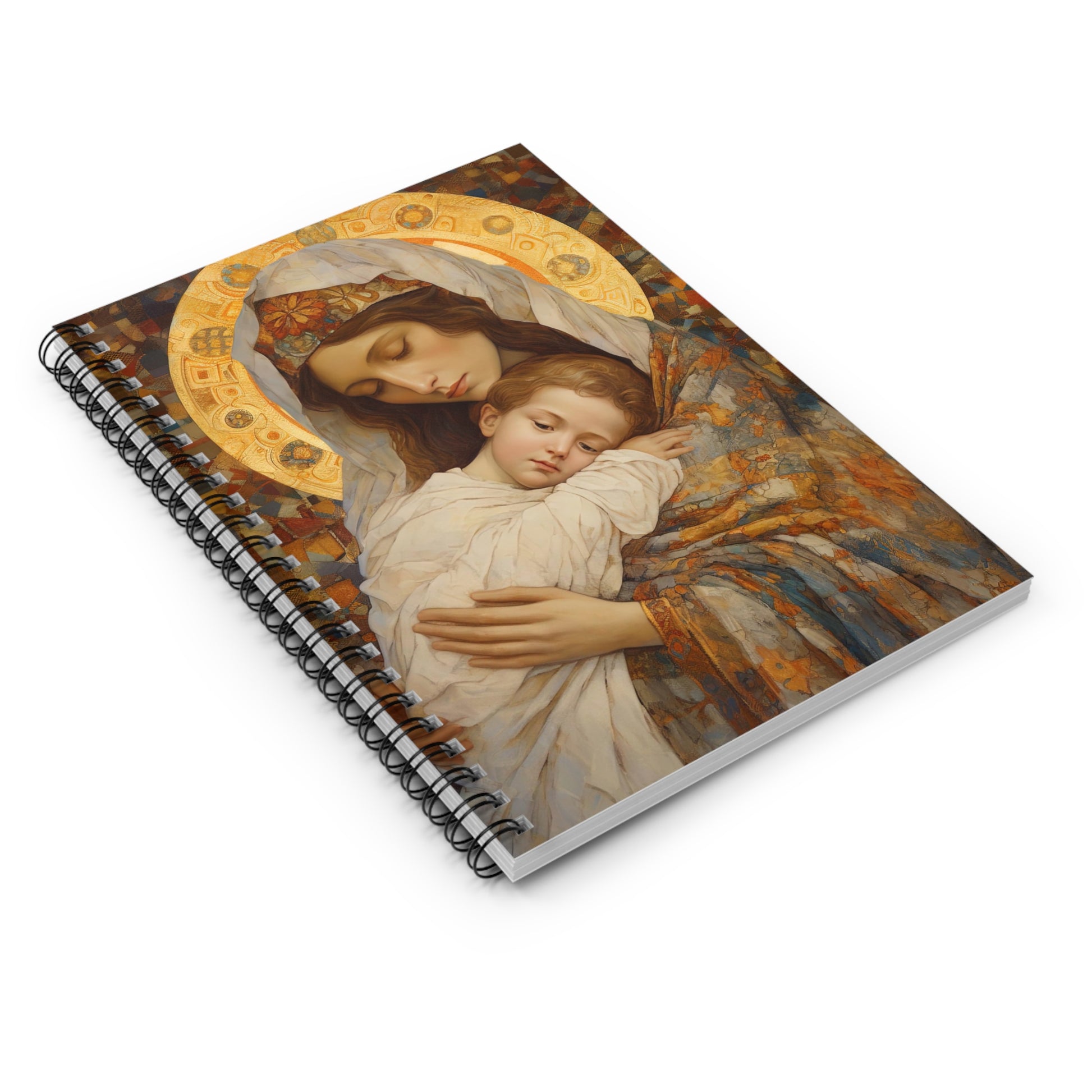 Cradle of Grace - Madonna and the Christ Child Journal - Sanctified Souls Art - Religious Based Notebook - Spiral Notebook - Ruled Line
