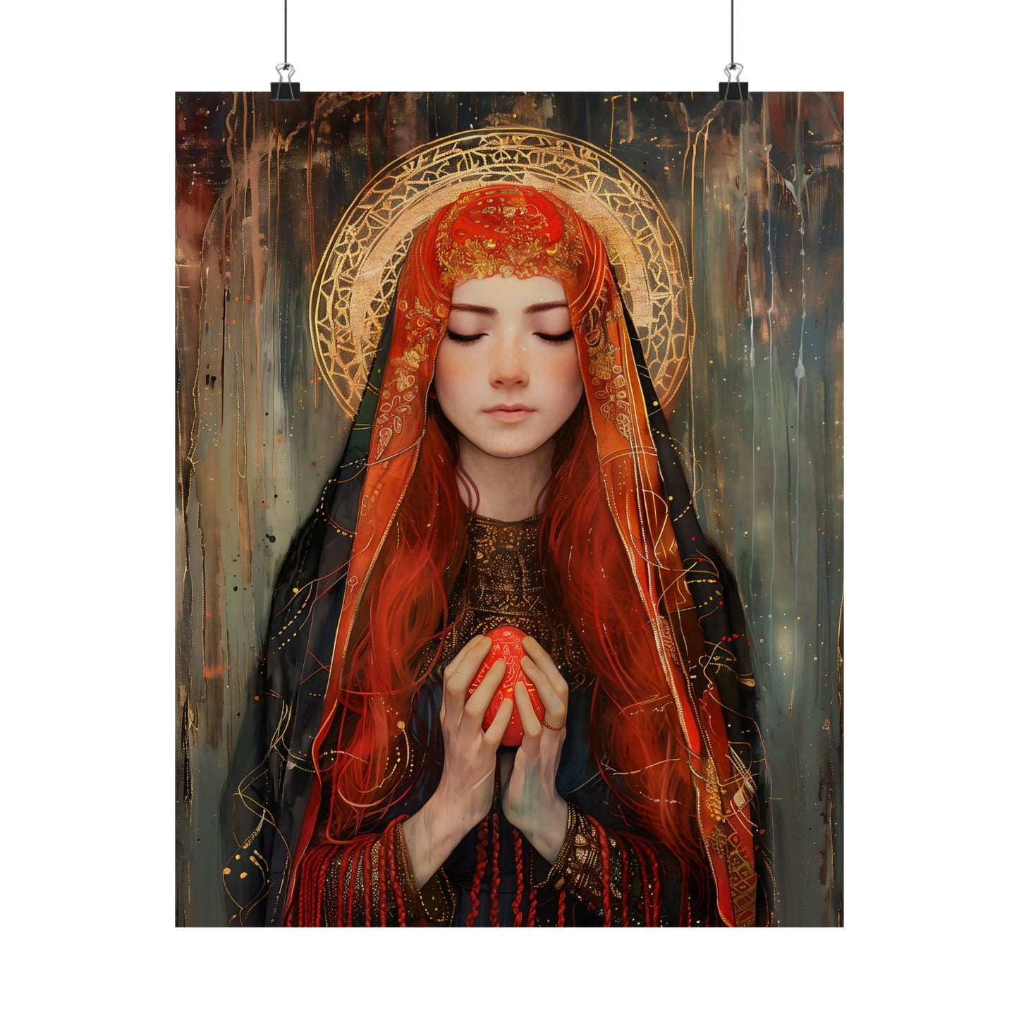 Devotion of Mary Magdalene - Saint Mary Magdalene and the Red Easter Egg - Sanctified Souls Print - Multiple Sizes - Premium Posters