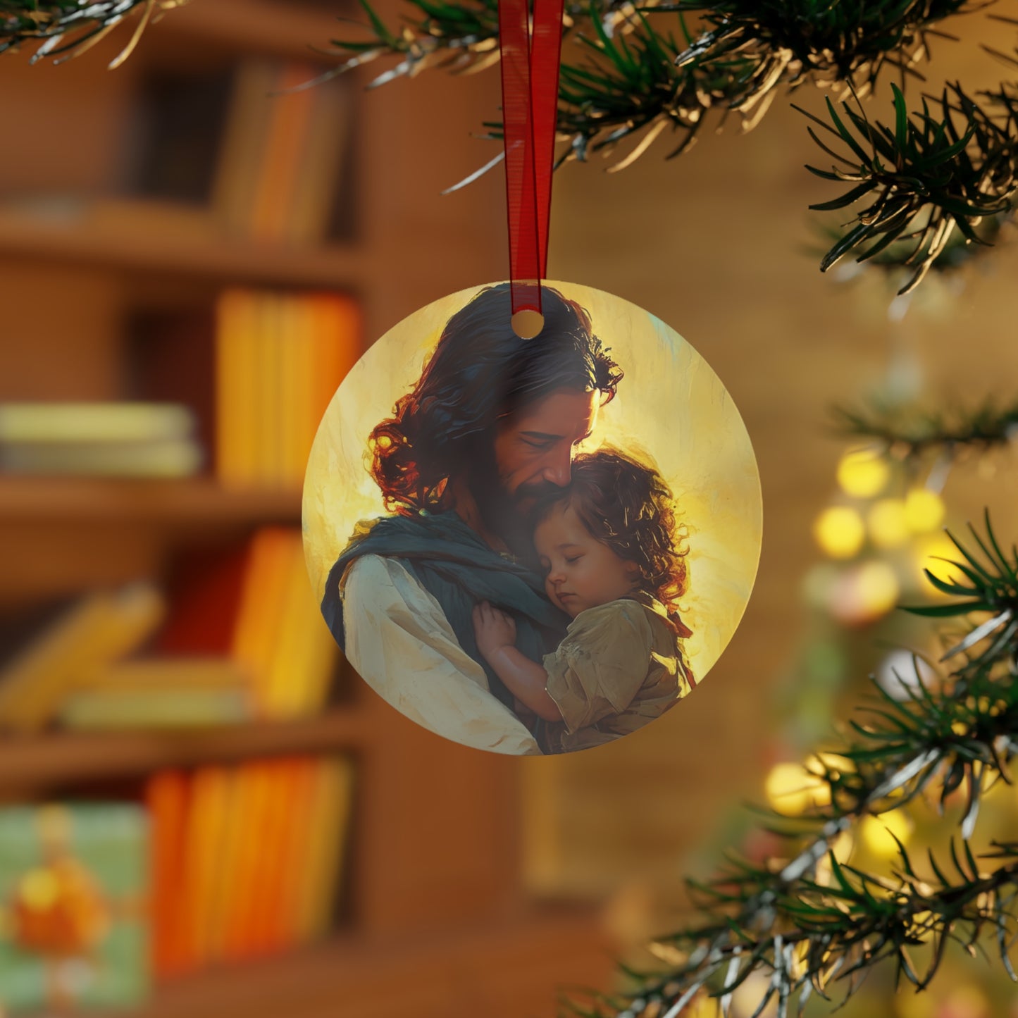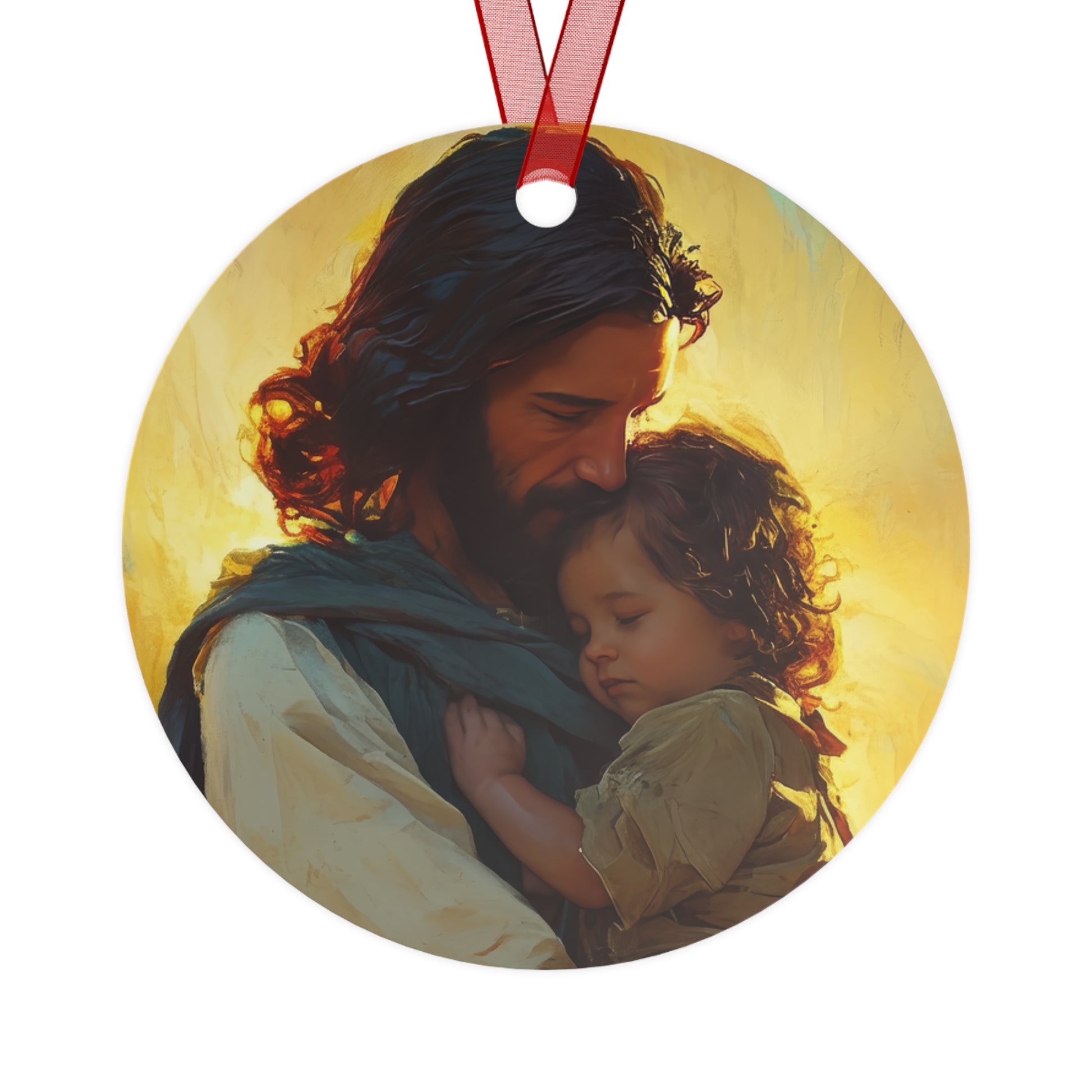Divine Protector of the Innocent - Christ and Child Metal Ornament - Religious Holiday Christmas Ornament and Keepsake - Catholic Keepsake
