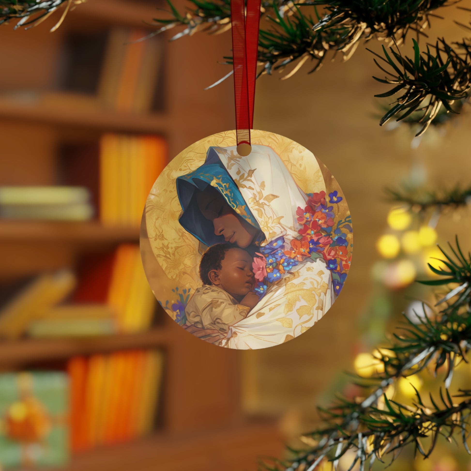 Each ornament is meticulously crafted, capturing the essence and distinctive attributes of these beloved figures. With a harmonious blend of colors and details, this round metal ornament becomes a captivating display of devotion and a source of inspiration for your faith journey.