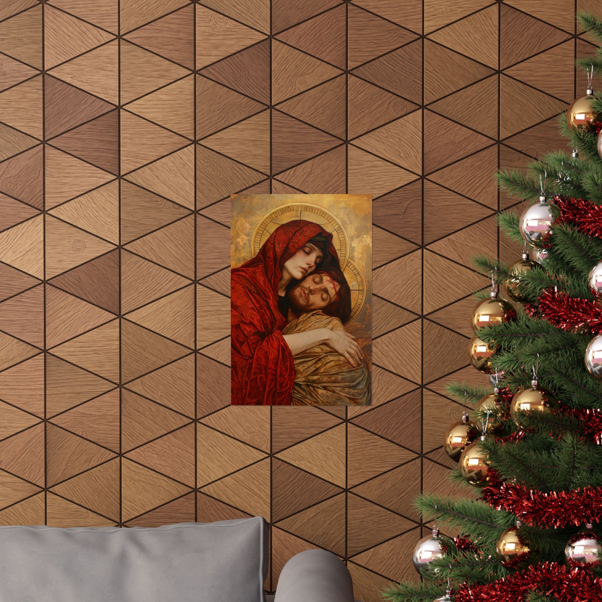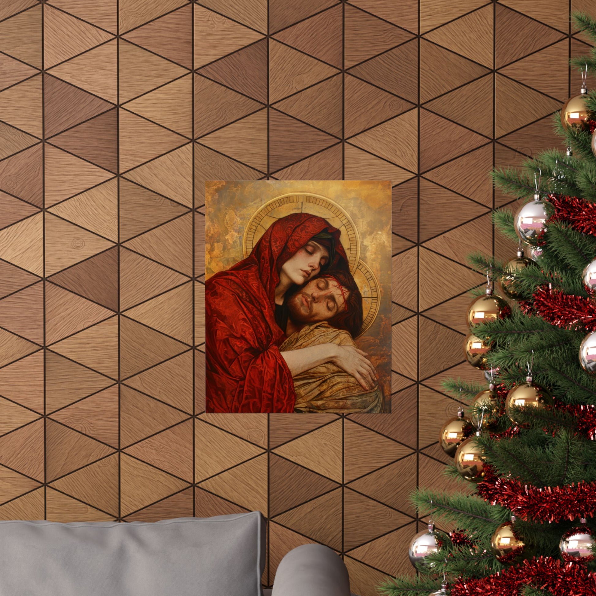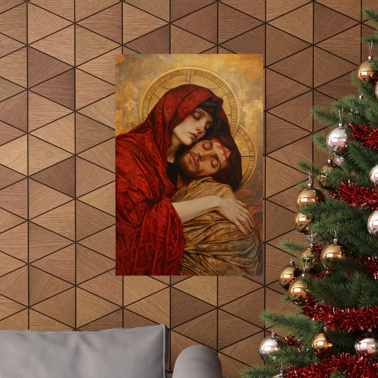 Eternal Sorrow - Mary's Mourning Beneath the Cross - Sanctified Souls Print - Multiple Sizes - Premium Posters - Catholic Art - Christian