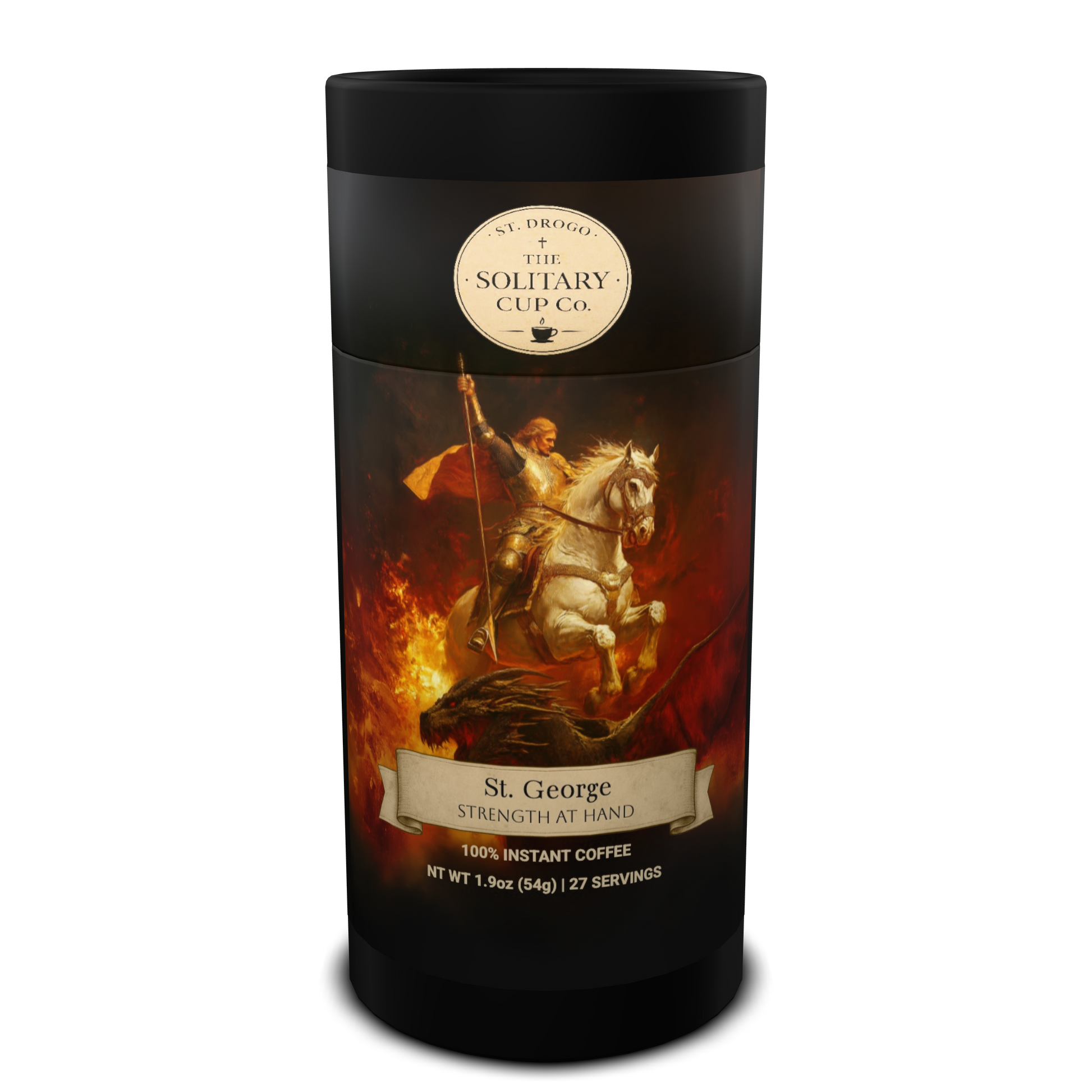 St. George - Strength at Hand (Instant Coffee Medium Roast) - St. Drogo - The Solitary Cup Co. - Artisan Catholic Saint Inspired Coffee - Instant coffee (freeze-dried) - NT WT 1.9oz (54g) - 27 SERVINGS