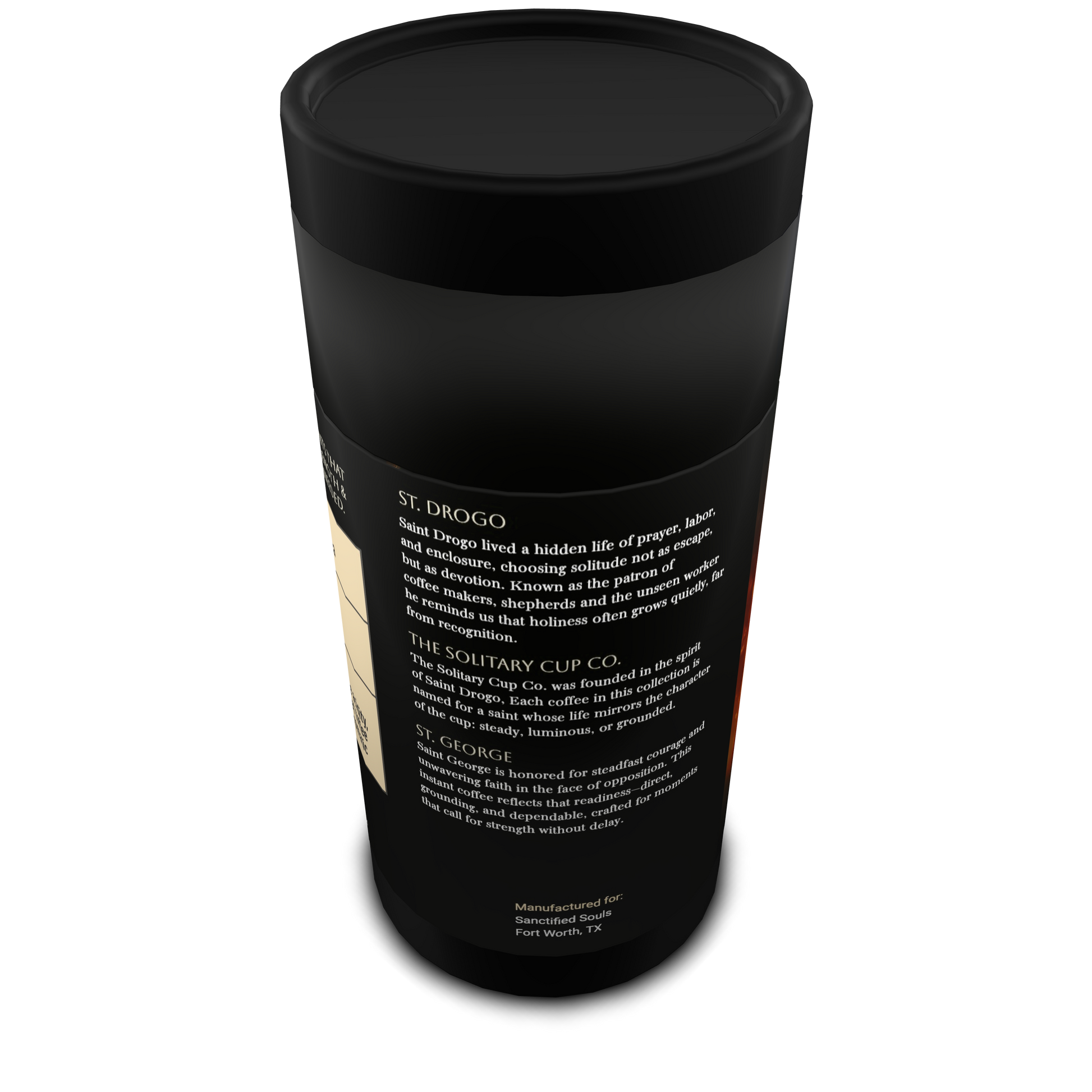 St. Drogo - The Solitary Cup Co. is presented by Sanctified Souls, a studio devoted to sacred art, devotional living, and faith-rooted craftsmanship. Each tube includes a QR code linking to sanctifiedsouls.com, where customers can learn more about the saints, the story behind the collection, and the quiet life that inspired it.