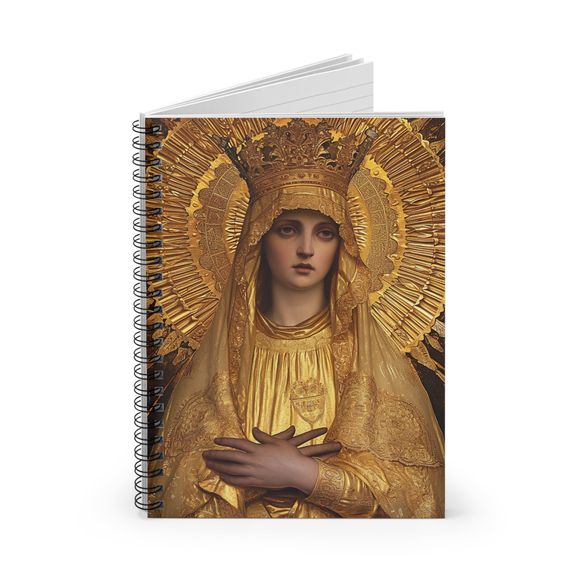 Golden Mary - Radiant Tribute to Our Lady of the Gate of Dawn Journal - Religious Based Notebook - Spiral Notebook - The Golden Virgin