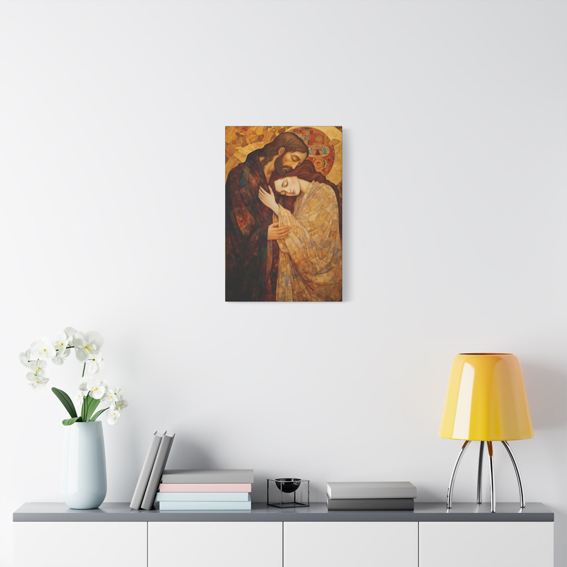 Healing Love- The Embrace of Christ and Mary Magdalene Museum Wrapped Canvas - Sanctified Souls Print -Based on Klimt's The Kiss