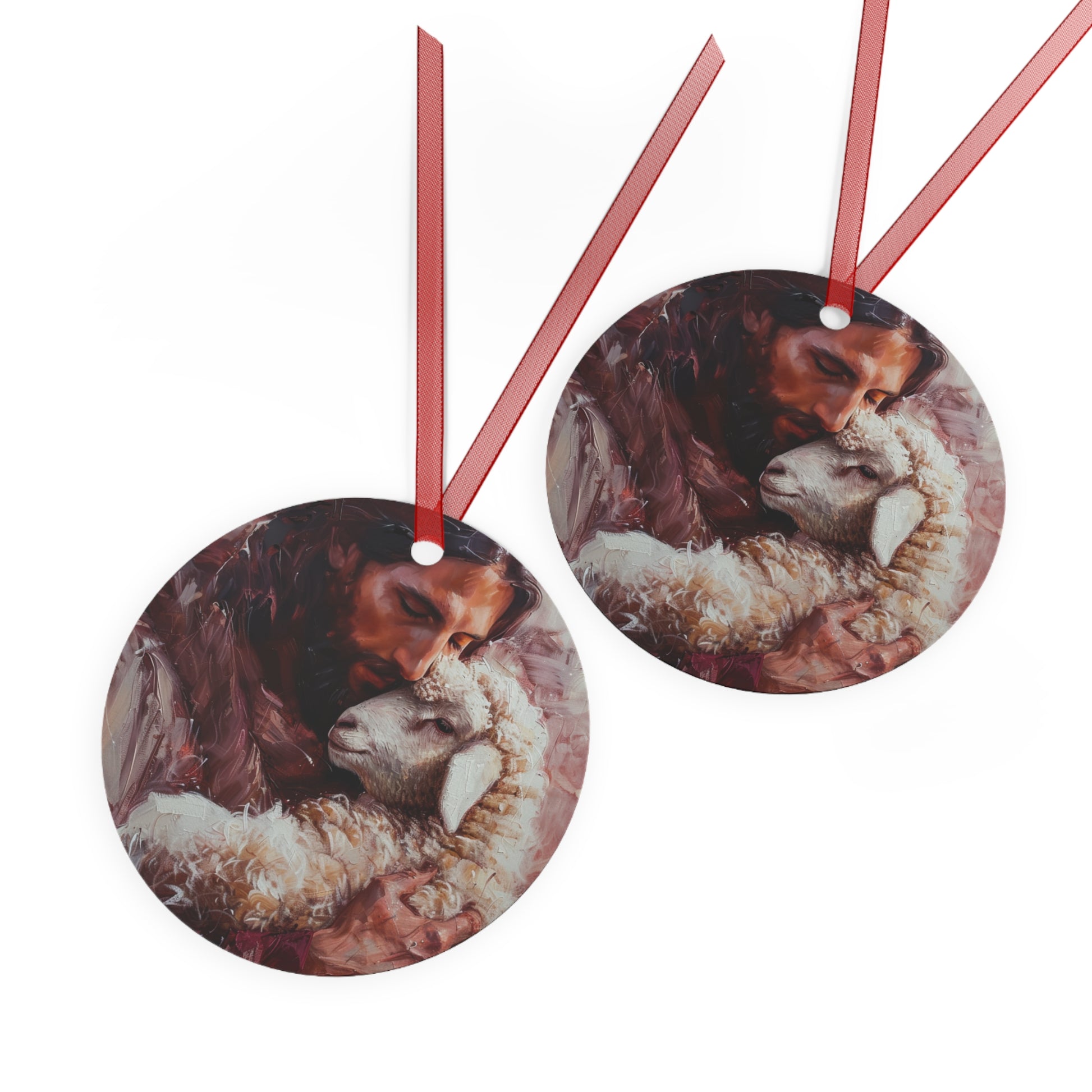 Jesus and the Little Lamb Metal Ornament - Religious Holiday Christmas Ornament and Keepsake - Catholic Keepsake
