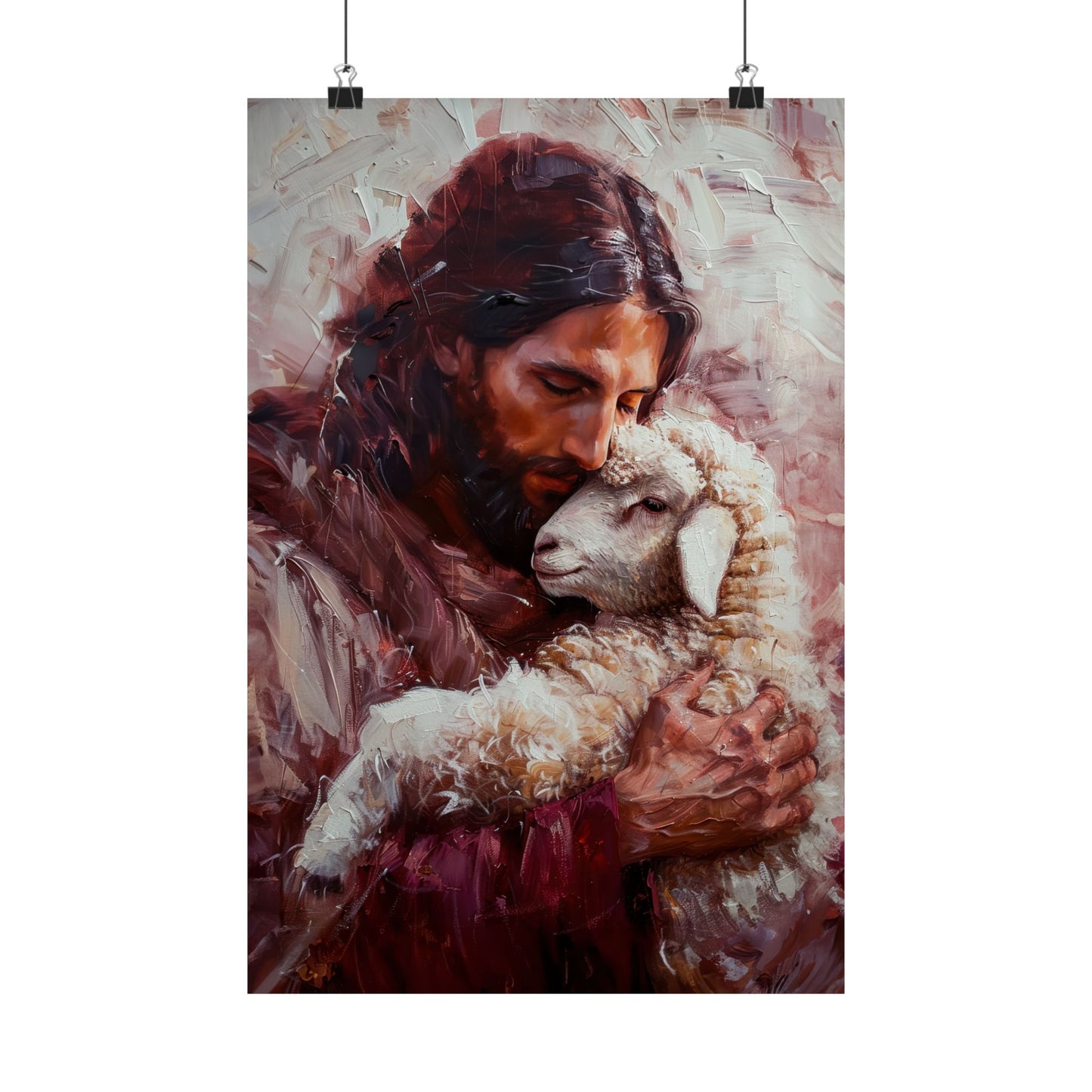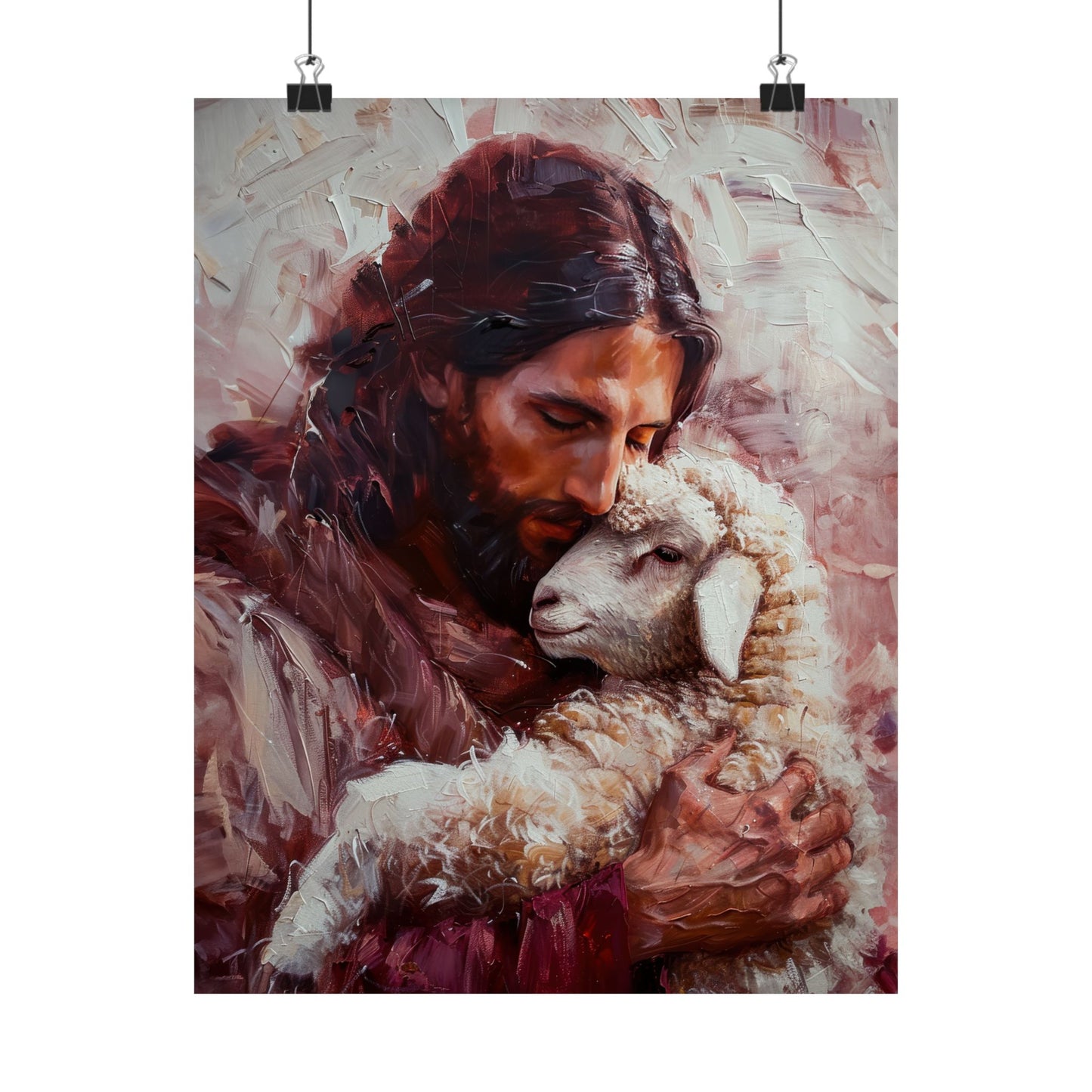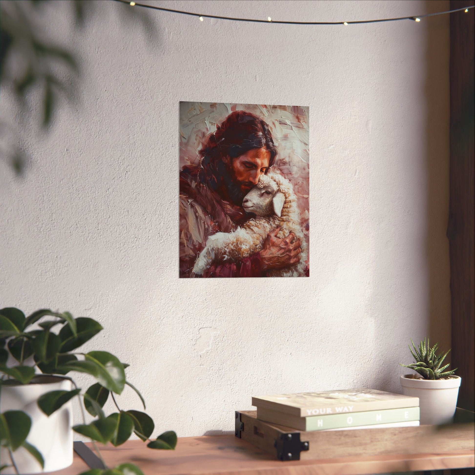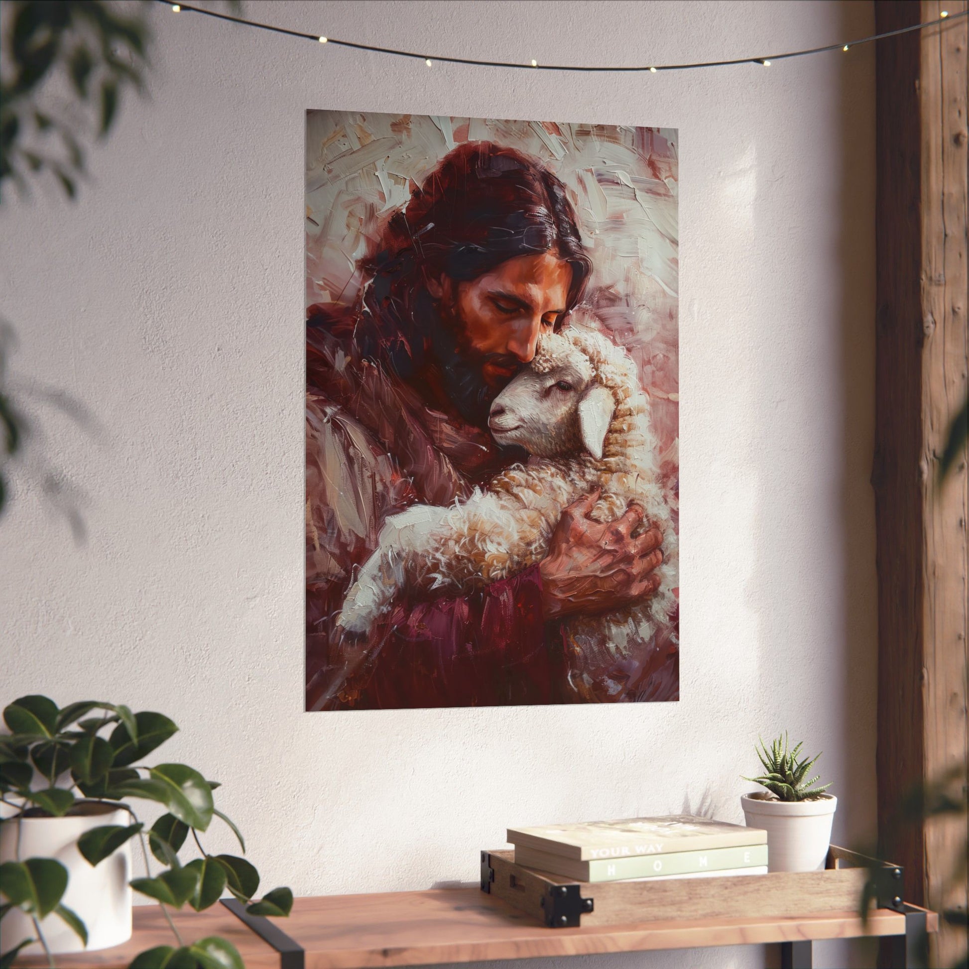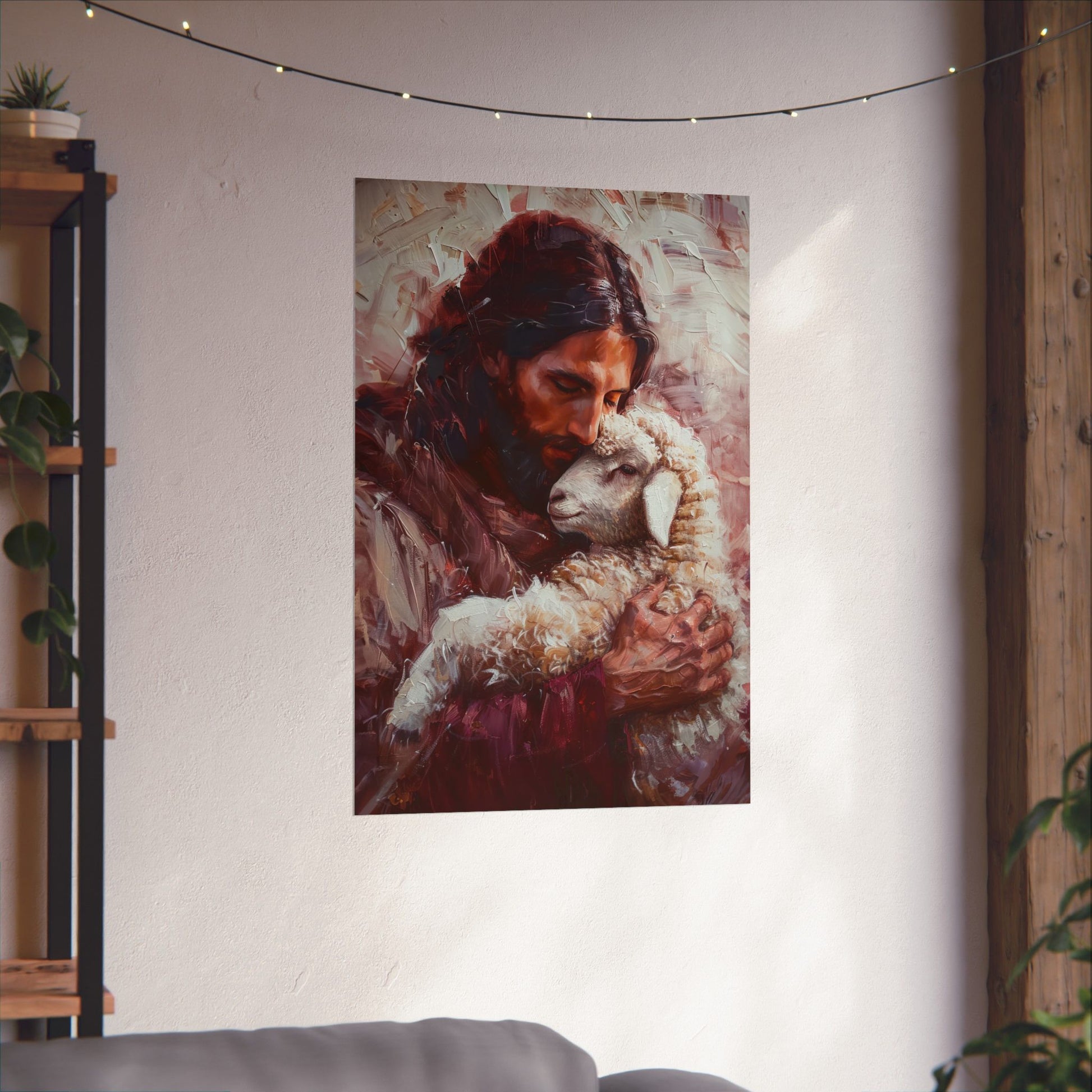 Jesus and the Little Lamb Poster Print - Sanctified Souls Print - Multiple Sizes - Premium Posters - Catholic Art - Christian painting