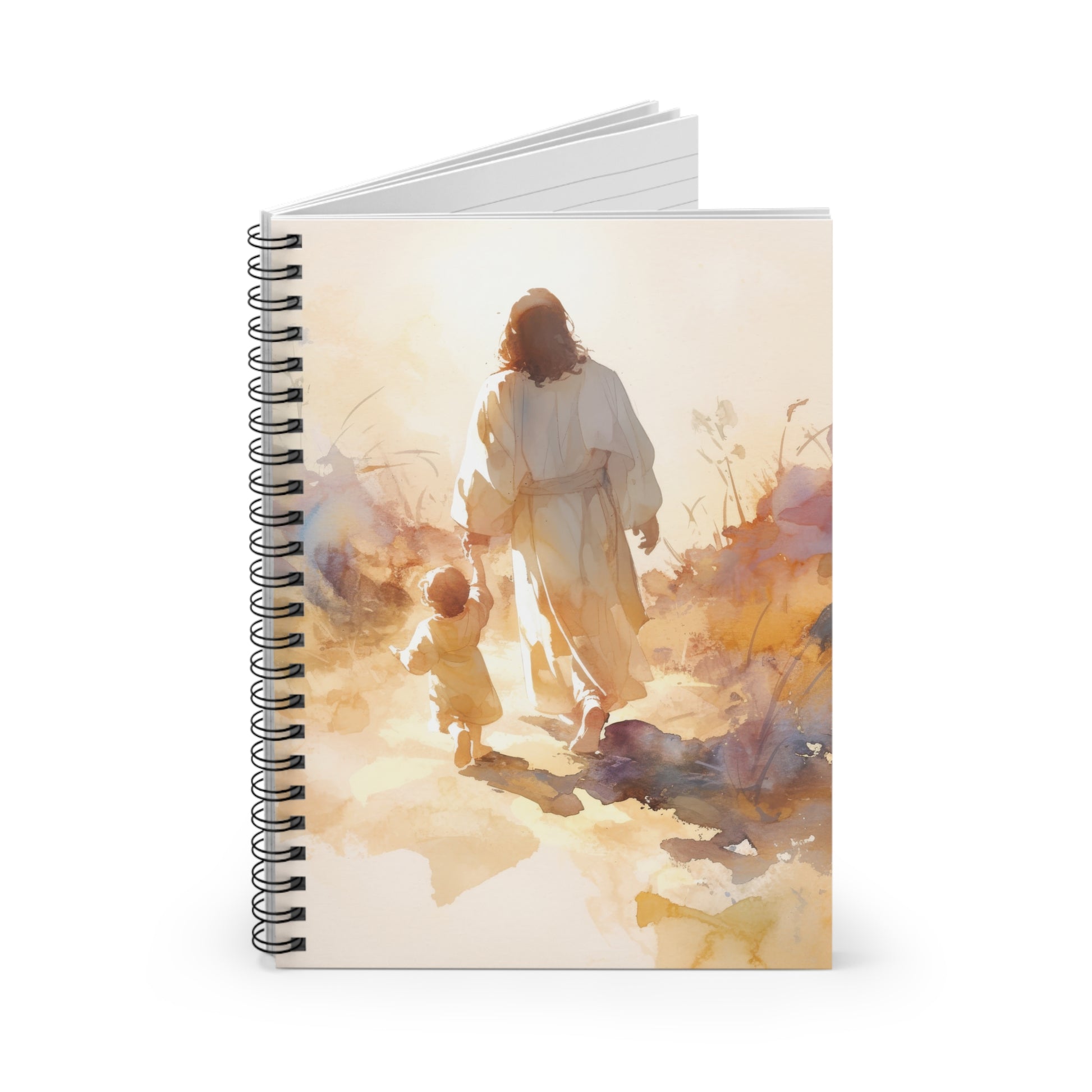 Jesus Guiding a Child in Faith - Christ and Child - Sanctified Souls Art - Religious - Spiral Notebook - Ruled Line - Religious art