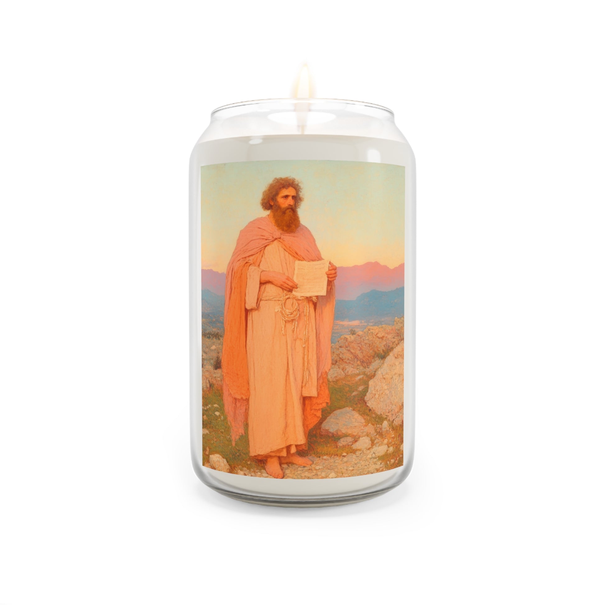 Welcome to Sanctified Souls Shop, where divine illumination meets aromatic tranquility. Experience the spiritual essence with this scented prayer candles featuring saints or Divine figures who inspire and guide us on our sacred journey. Each candle in our collection is thoughtfully designed. Made with a 100% natural soy wax blend, these scented candles feature a 100% cotton wick and deliver 70-80 hours of blissful relaxation. For best results, burn candle 3 to 4 hours of each lighting and trim wick to 1/4". Discontinue use with 1/2" of wax remaining.