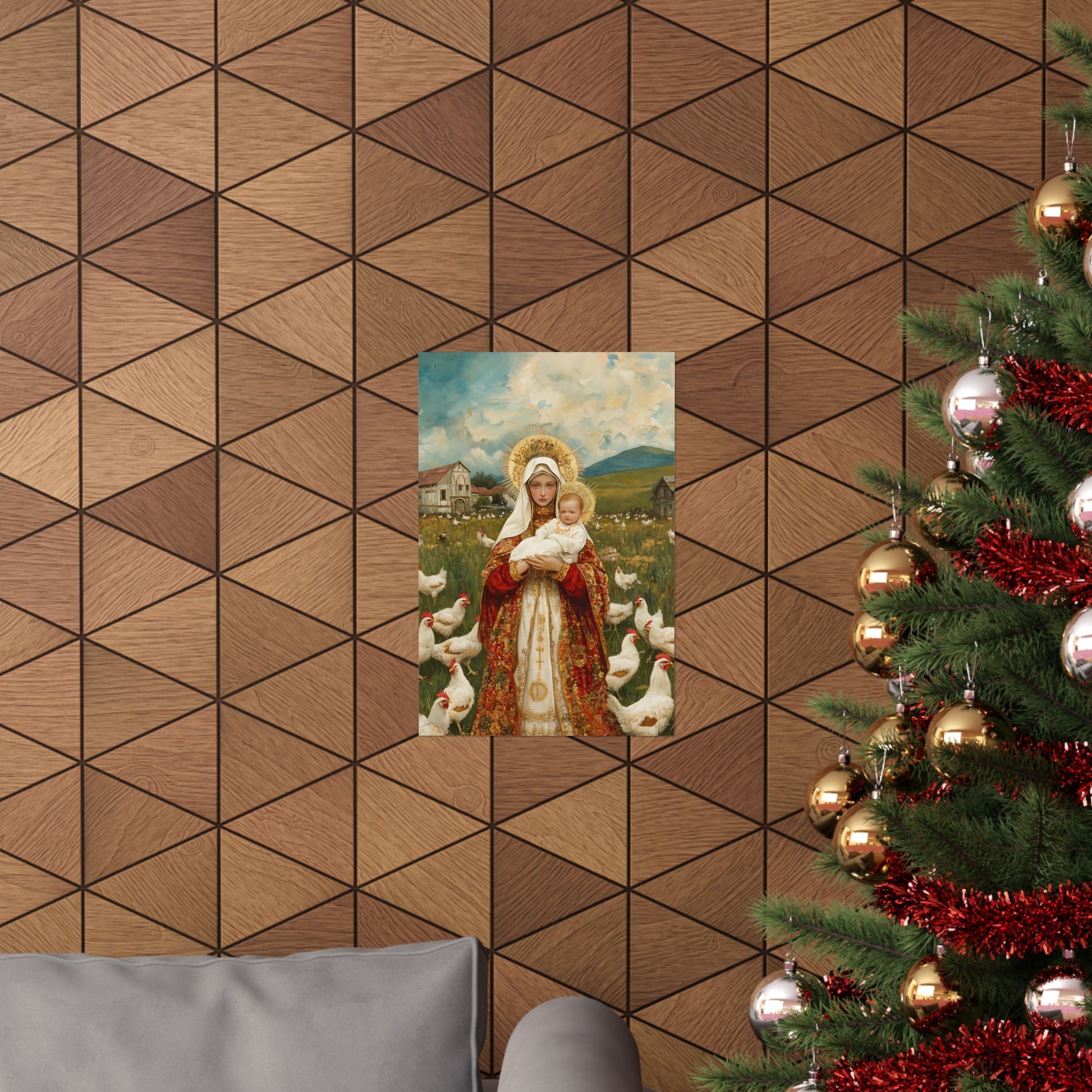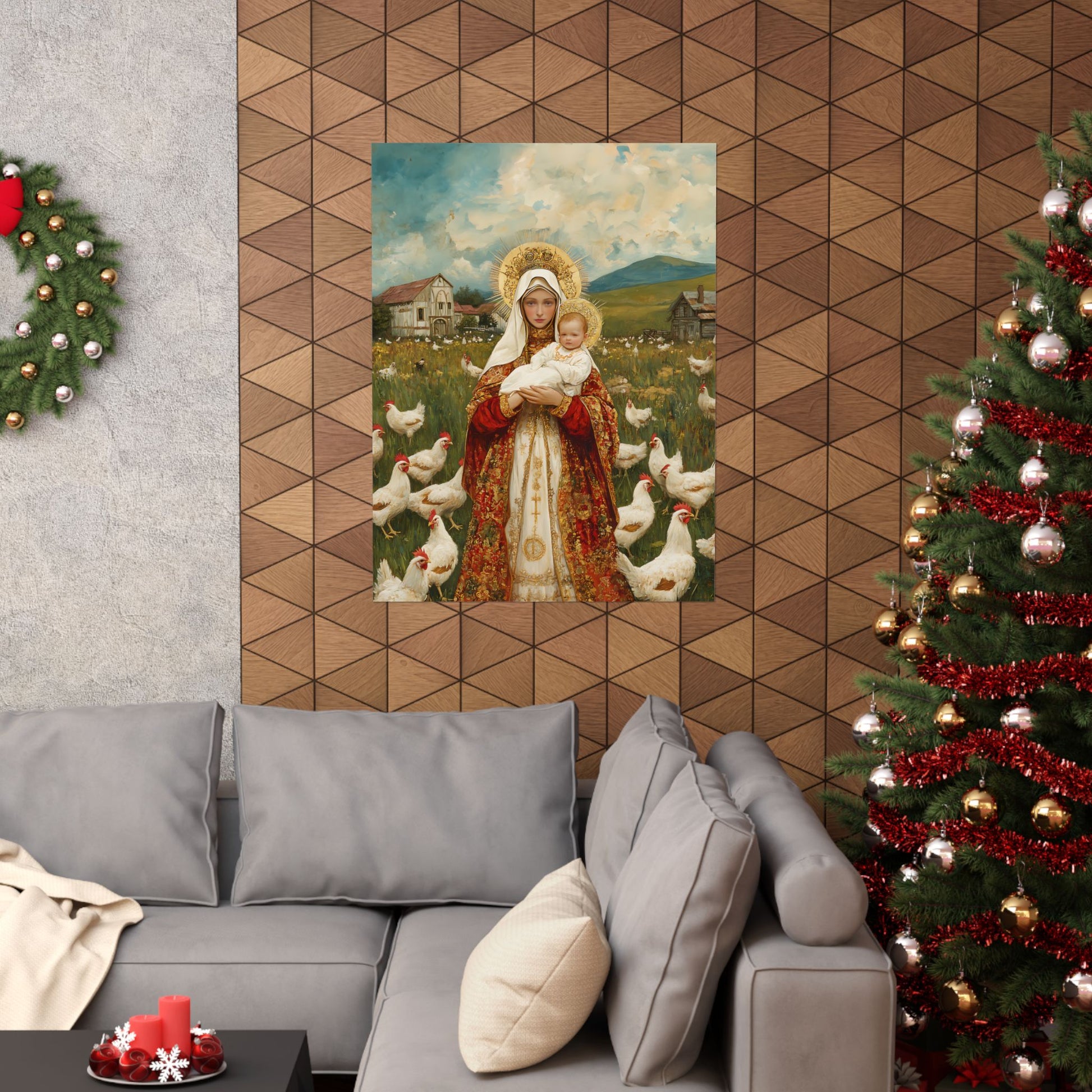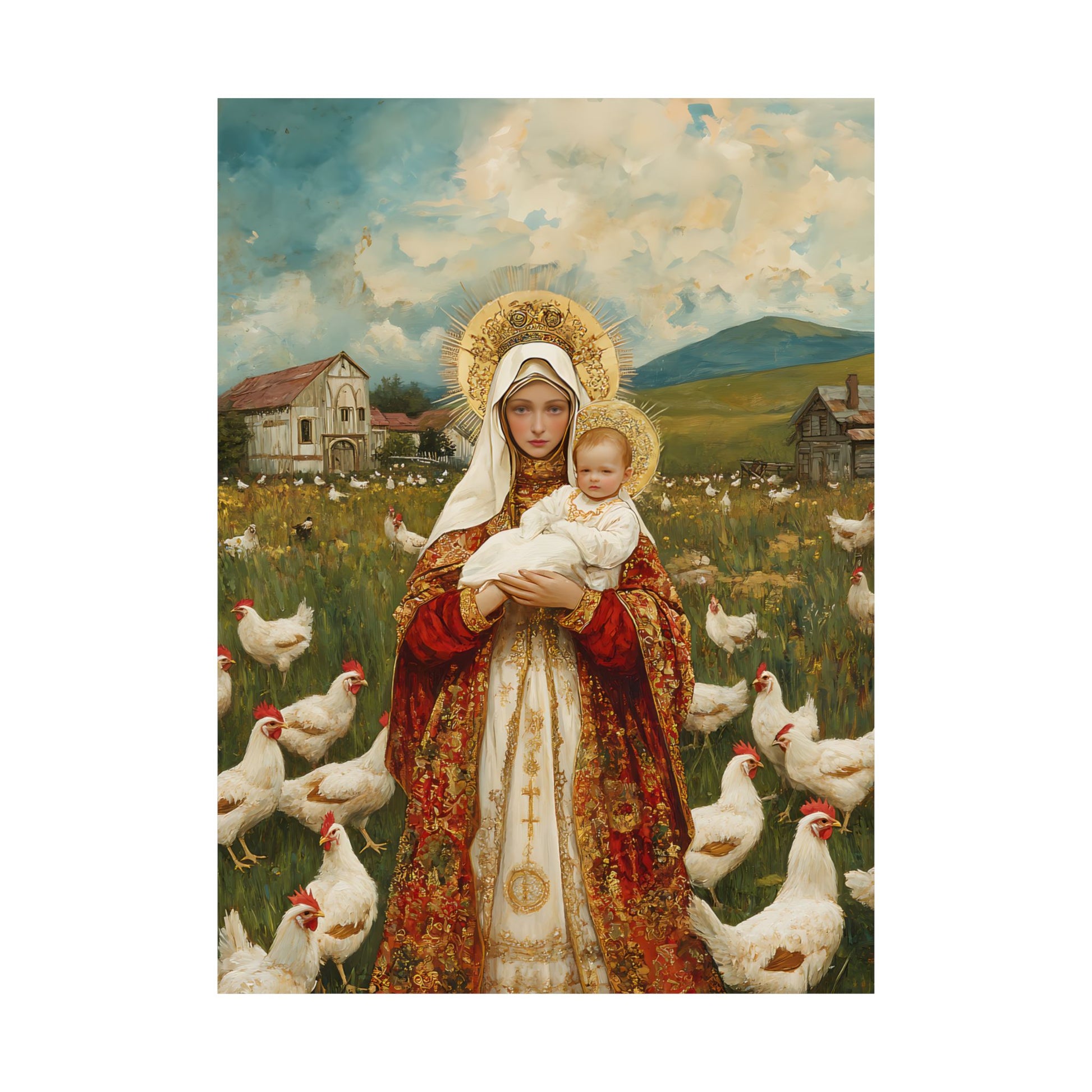 Our Lady of the Hens: Protector of the Humble Flock - Sanctified Souls Print - Multiple Sizes - Premium Posters - Catholic Art - Christian