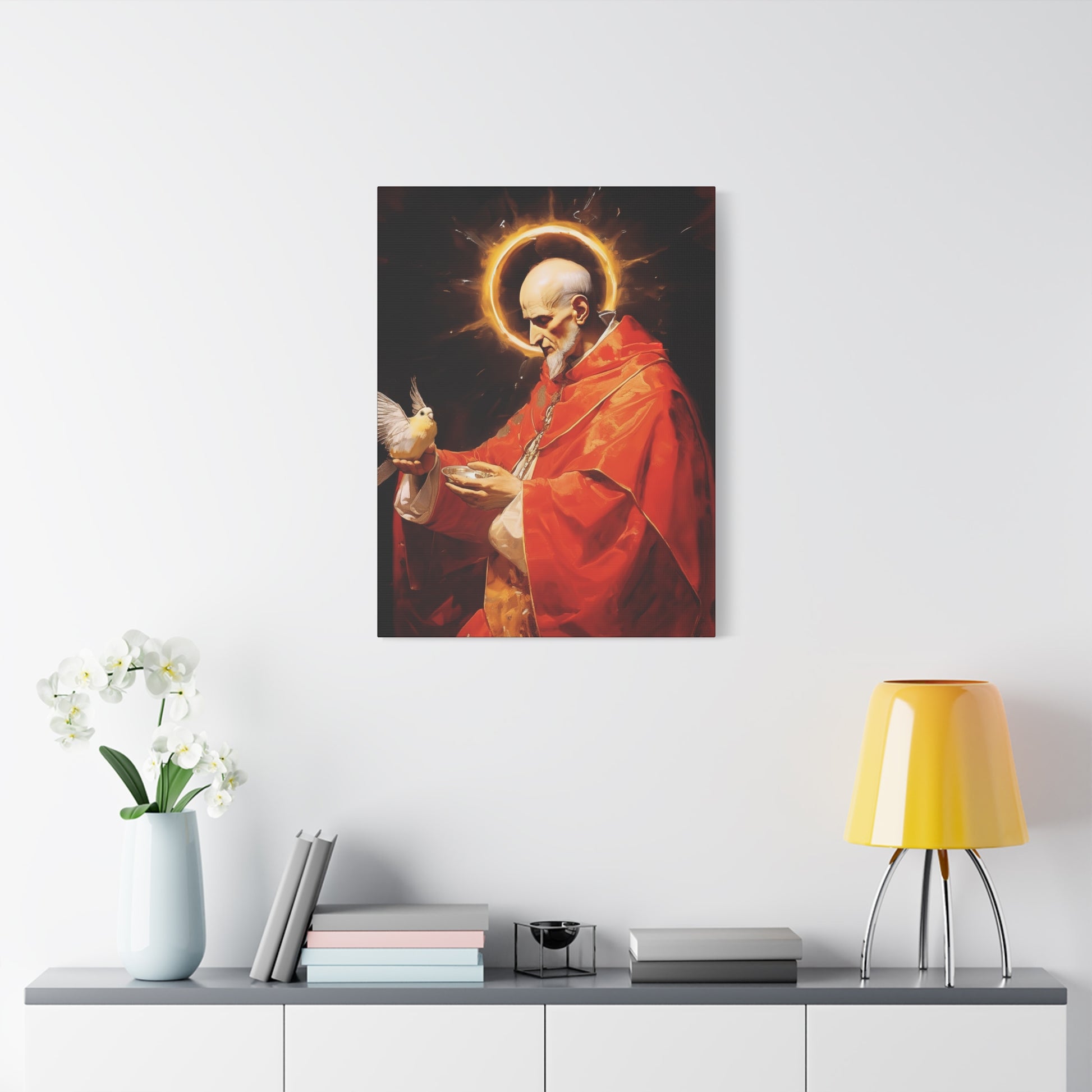Hang this canvas print in your home, prayer room, or sacred space, and let the transformative power of the saint's image inspire your thoughts, nurture your faith, and deepen your spiritual connection. Each gaze upon this captivating artwork becomes a moment of reflection, inviting you to seek the saint's intercession and emulate their virtues in your own life.