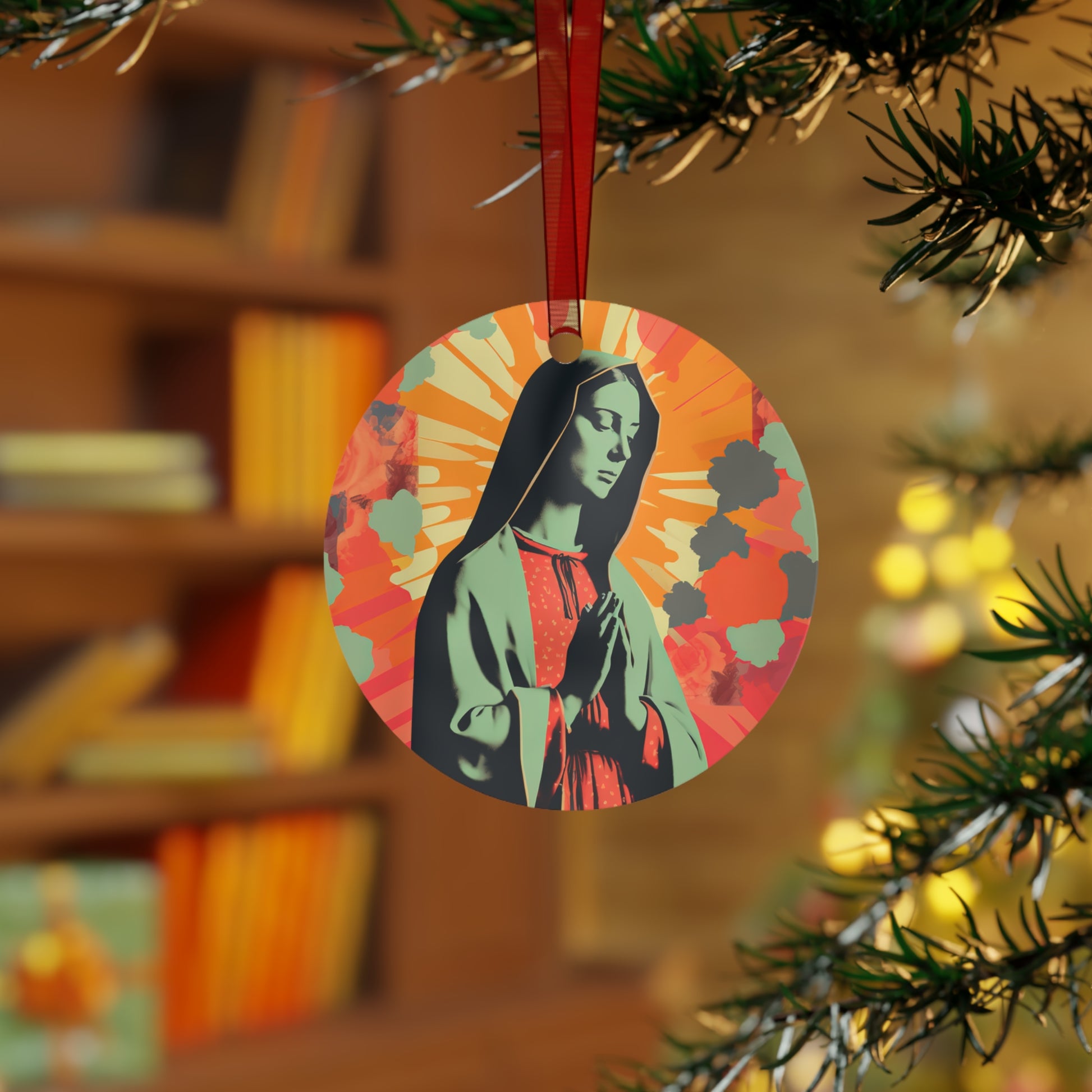 Queen of Heaven : Mother Mary in Prayer Metal Ornament - Religious Holiday Christmas Ornament and Keepsake - Double sided - Virgin Mary