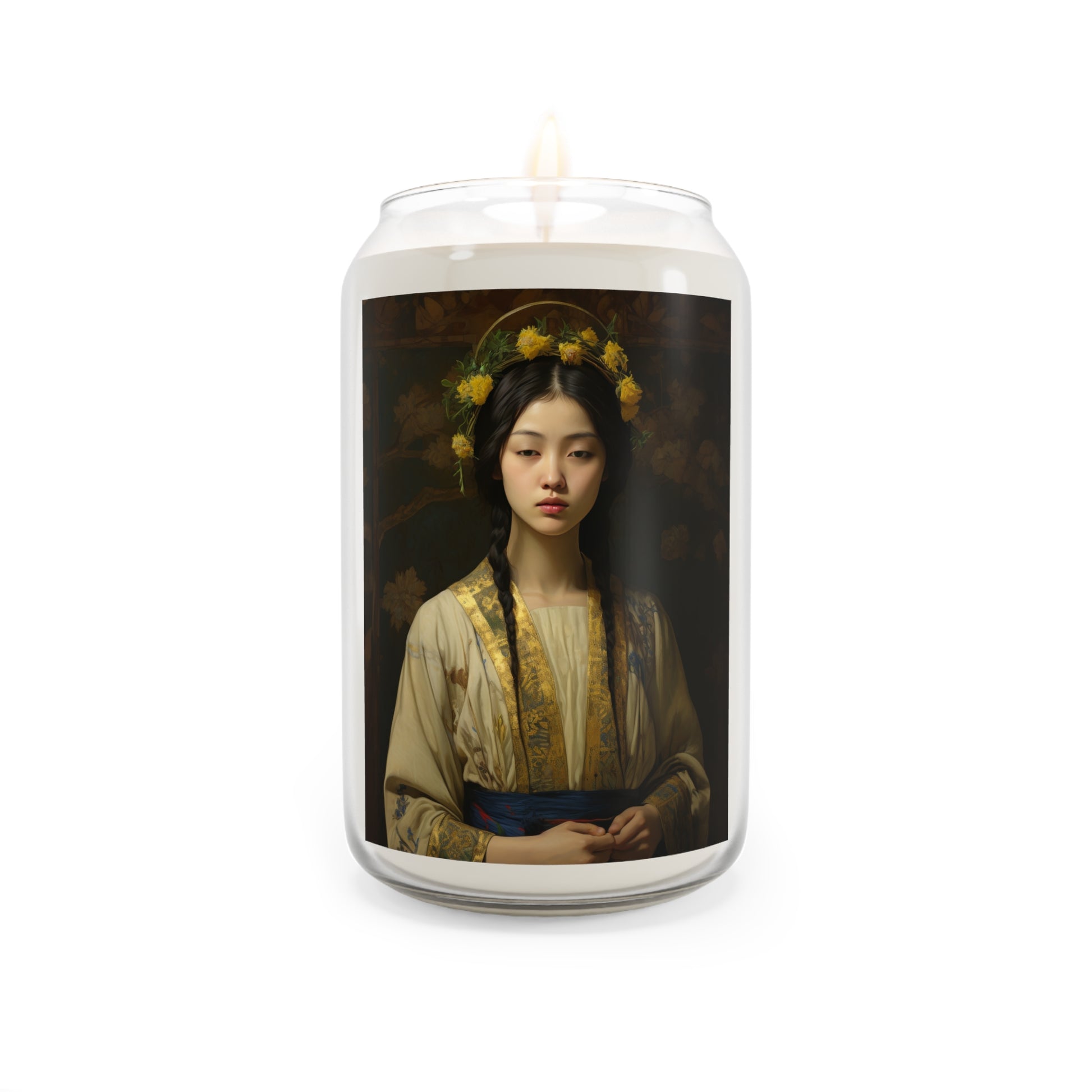 Welcome to Sanctified Souls Shop, where divine illumination meets aromatic tranquility. Experience the spiritual essence with this scented prayer candles featuring saints or Divine figures who inspire and guide us on our sacred journey. Each candle in our collection is thoughtfully designed. Made with a 100% natural soy wax blend, these scented candles feature a 100% cotton wick and deliver 70-80 hours of blissful relaxation. For best results, burn candle 3 to 4 hours of each lighting and trim wick to 1/4". Discontinue use with 1/2" of wax remaining.
