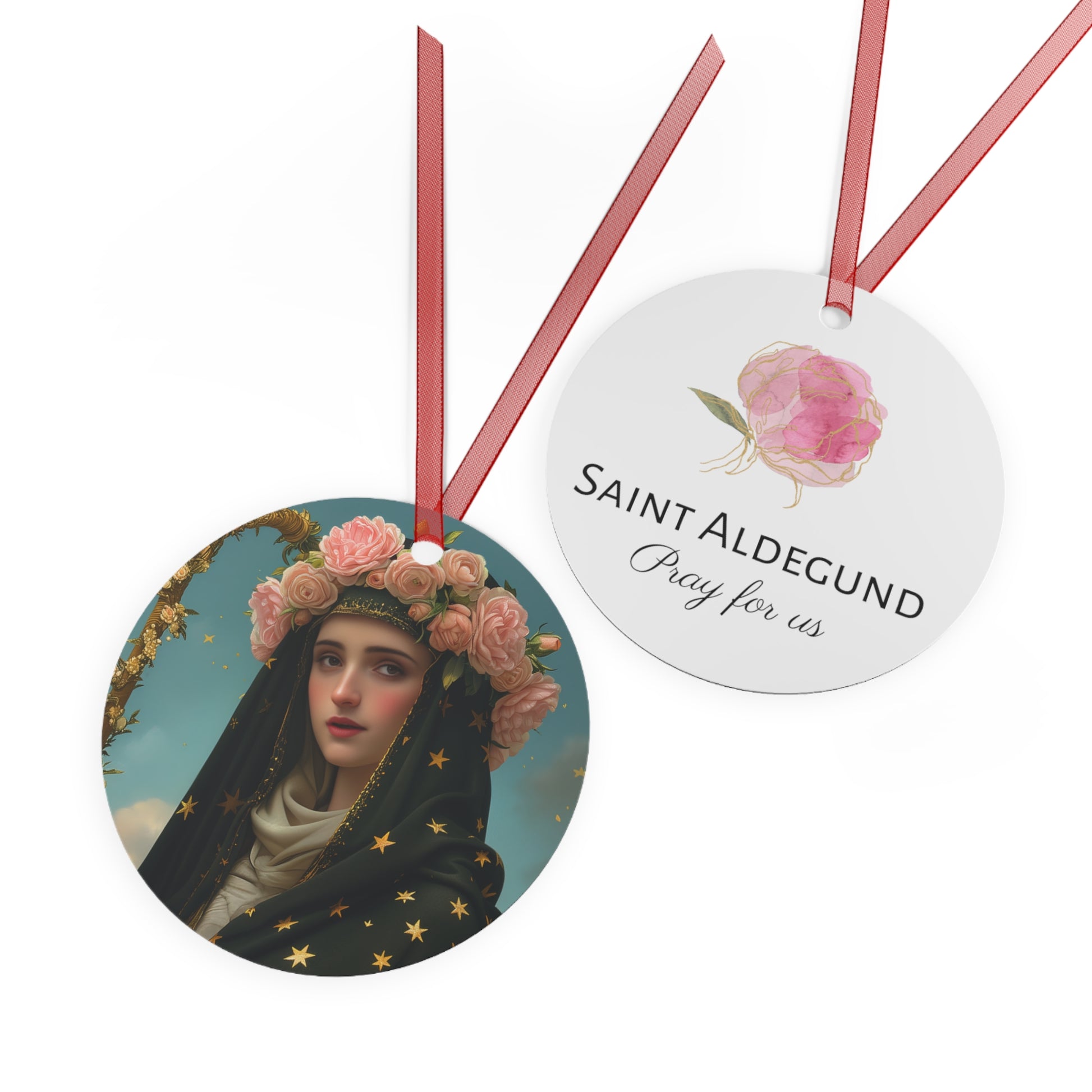 Saint Aldegund / Aldegundis Metal Ornament - Religious Holiday Christmas Ornament and Keepsake - Double sided - Prayer Ornament