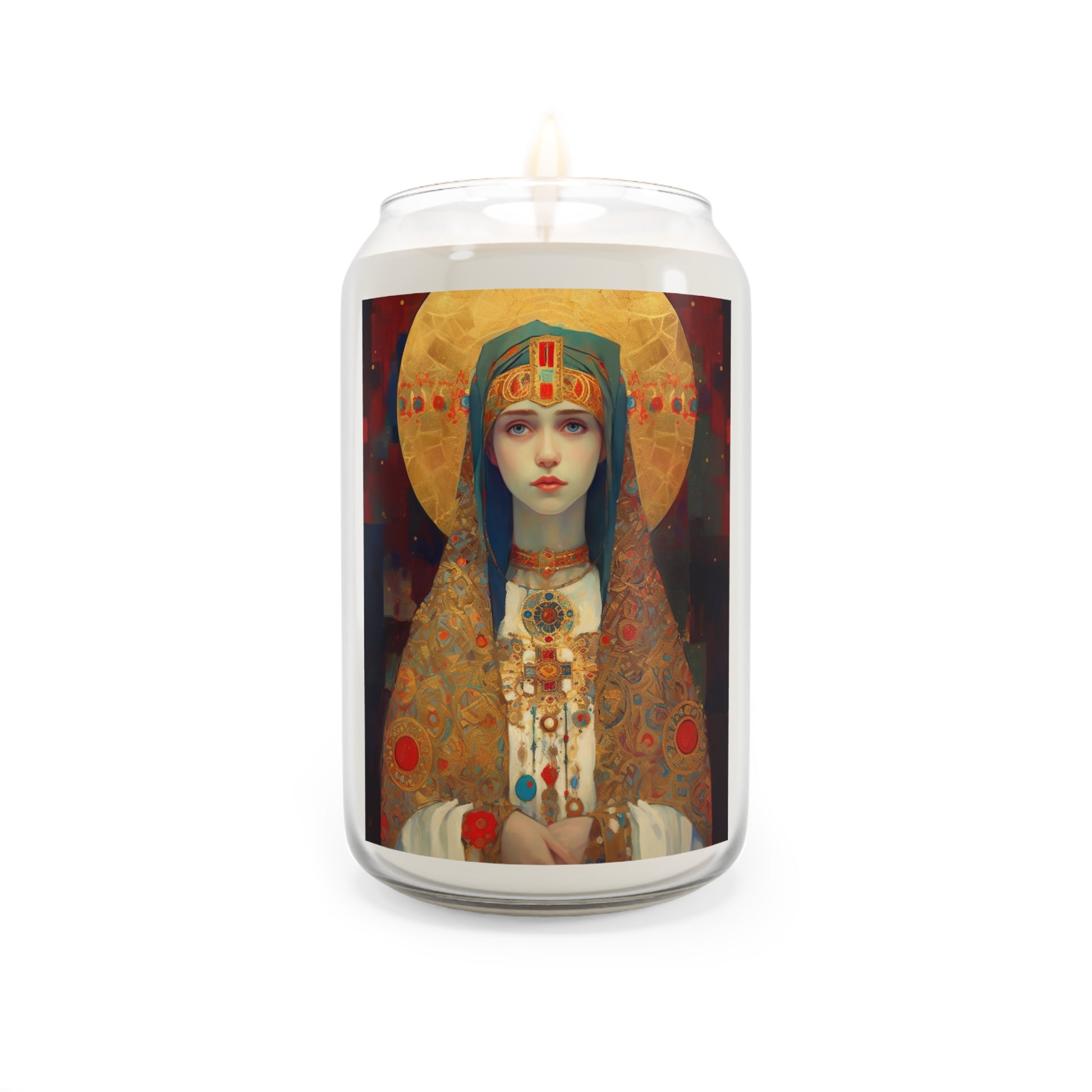 Welcome to Sanctified Souls Shop, where divine illumination meets aromatic tranquility. Experience the spiritual essence with this scented prayer candles featuring saints or Divine figures who inspire and guide us on our sacred journey. Each candle in our collection is thoughtfully designed. Made with a 100% natural soy wax blend, these scented candles feature a 100% cotton wick and deliver 70-80 hours of blissful relaxation. For best results, burn candle 3 to 4 hours of each lighting and trim wick to 1/4". Discontinue use with 1/2" of wax remaining.