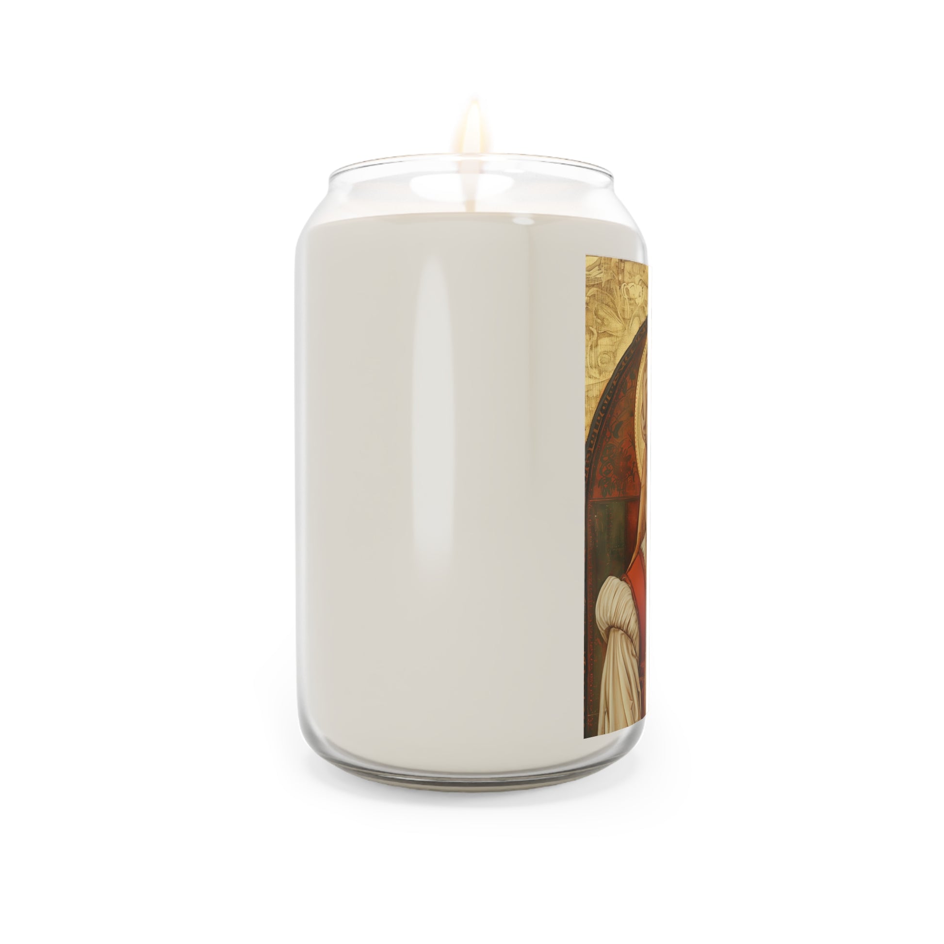 Welcome to Sanctified Souls Shop, where divine illumination meets aromatic tranquility. Experience the spiritual essence with this scented prayer candles featuring saints or Divine figures who inspire and guide us on our sacred journey. Each candle in our collection is thoughtfully designed. Made with a 100% natural soy wax blend, these scented candles feature a 100% cotton wick and deliver 70-80 hours of blissful relaxation. For best results, burn candle 3 to 4 hours of each lighting and trim wick to 1/4". Discontinue use with 1/2" of wax remaining.