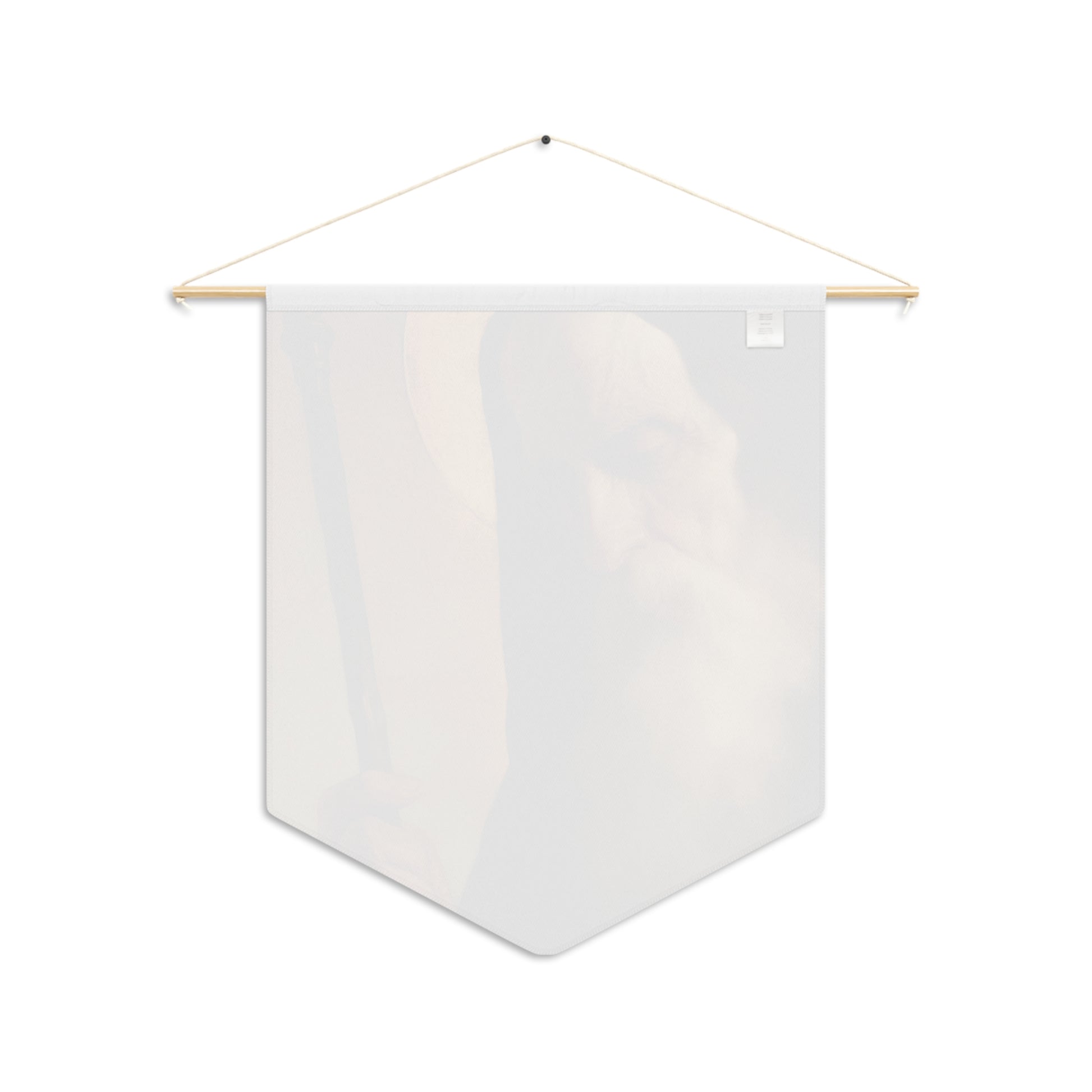 Immerse your space in the divine presence with our exquisite Wall Hanging/Pennant/Banner, adorned with the image of one of my saints or divine figure portraits. Each detail of this sacred artwork resonates with spiritual significance, offering a profound connection to the eternal wisdom and grace embodied by the chosen saint. This pennant comes with a wooden dowel for easy hanging.