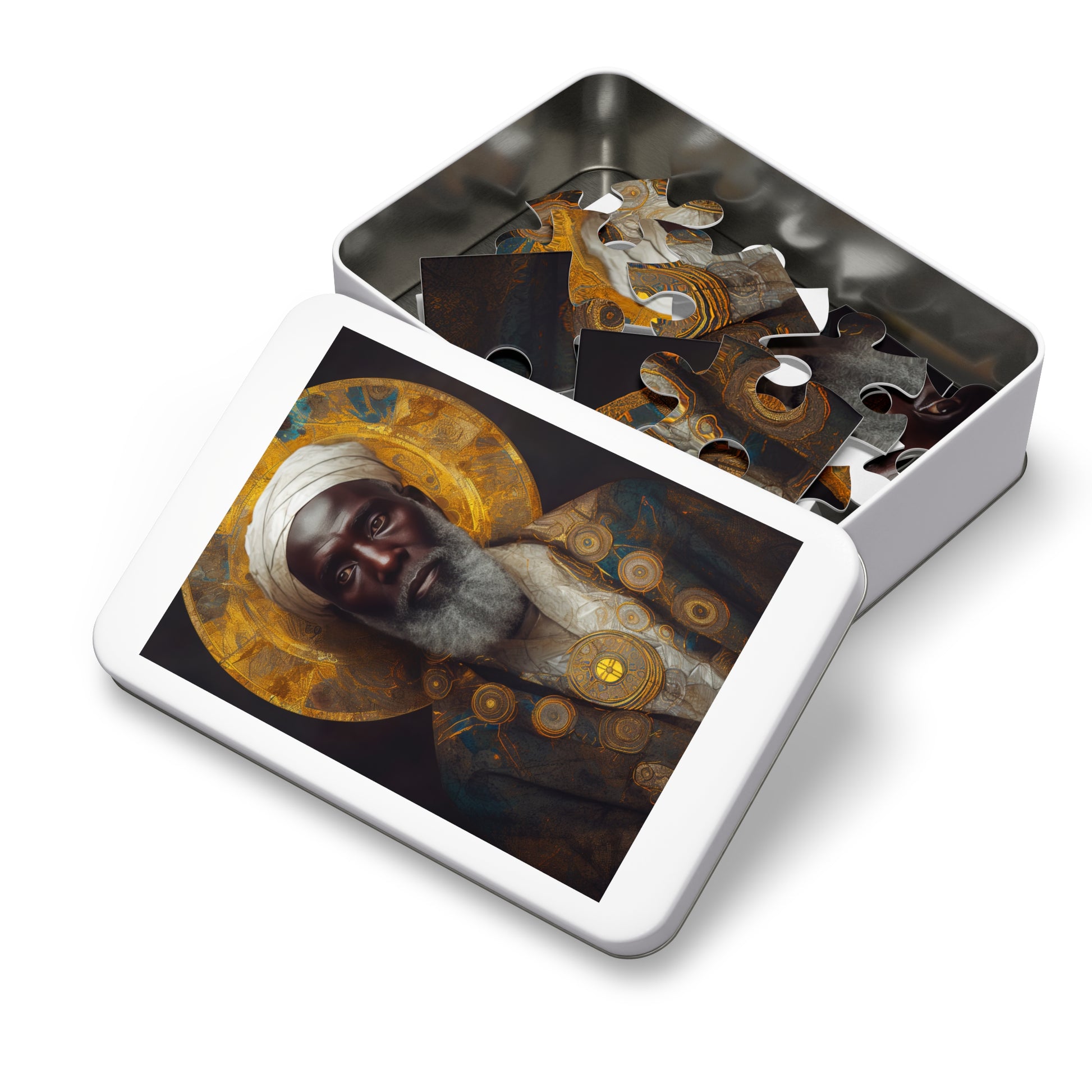 Immerse yourself in the inspiring stories and spiritual journeys of these revered individuals with our extraordinary saint-themed puzzles. Each puzzle is a gateway to contemplation, inviting you to engage in a meditative experience that celebrates the devotion and legacy of these holy figures. Made with high-quality chipboard pieces, this puzzle comes in 30, 110, 252, 500, and 1000-piece variations. The 252 and 500-piece puzzles are ideal for children from the age of 9, while the 1000-piece puzzle is great for adults. Ships in gift-ready metal boxes for a show-stopping presentation.