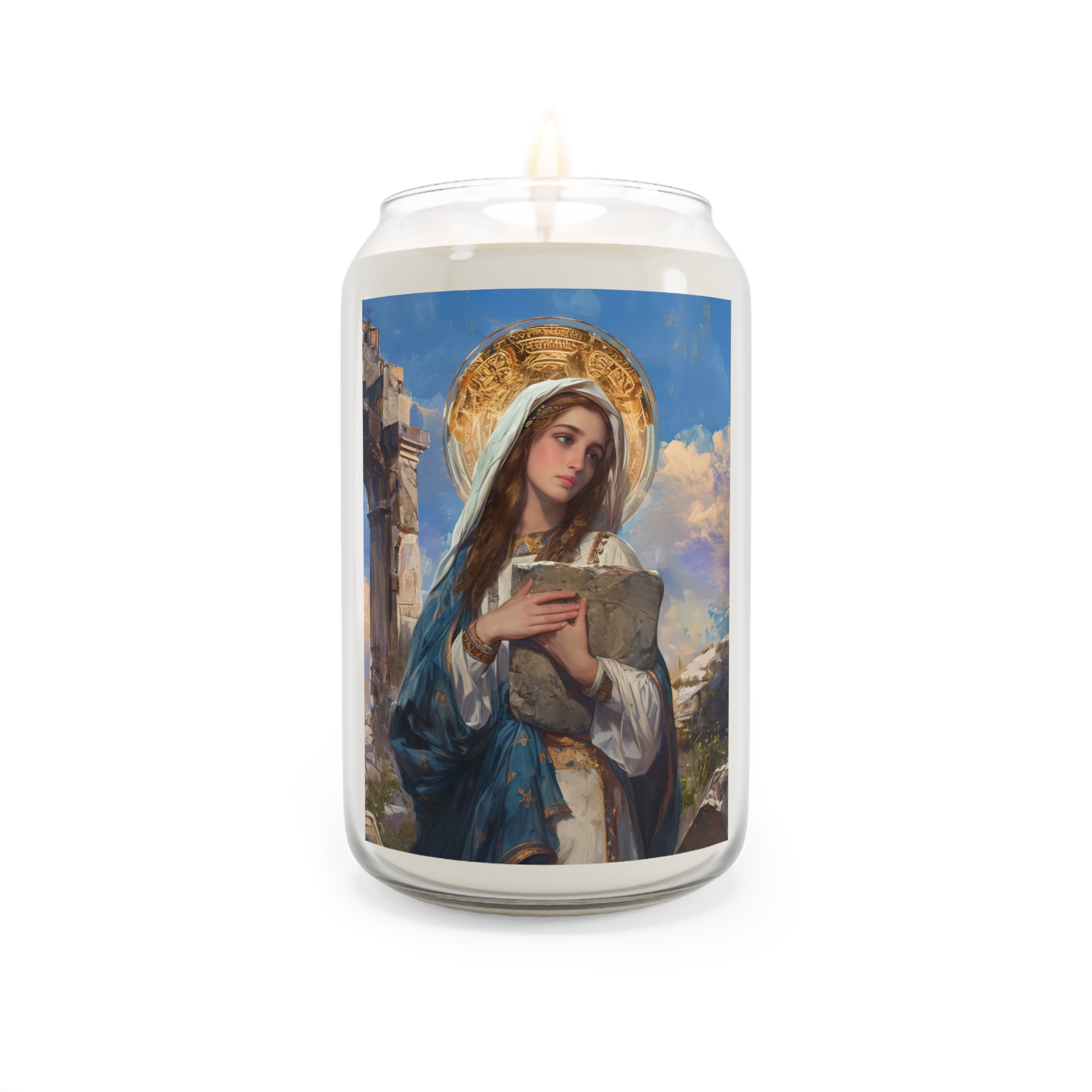 Welcome to Sanctified Souls Shop, where divine illumination meets aromatic tranquility. Experience the spiritual essence with this scented prayer candles featuring saints or Divine figures who inspire and guide us on our sacred journey. Each candle in our collection is thoughtfully designed. Made with a 100% natural soy wax blend, these scented candles feature a 100% cotton wick and deliver 70-80 hours of blissful relaxation. For best results, burn candle 3 to 4 hours of each lighting and trim wick to 1/4". Discontinue use with 1/2" of wax remaining.