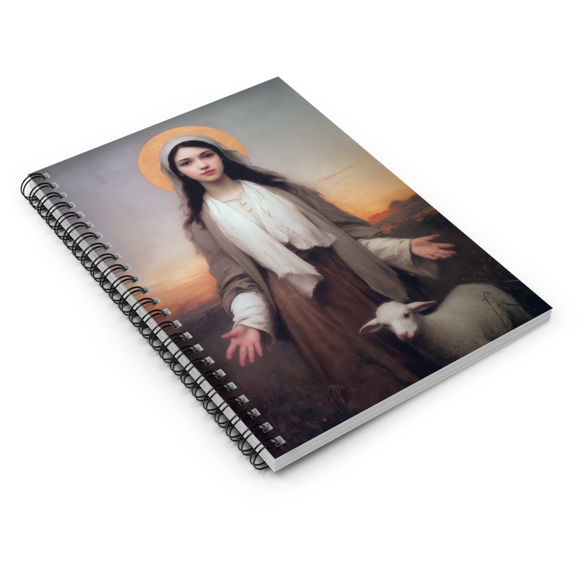 Each notebook features a cover adorned with a depiction of a saint, holy figure or religious relic, carefully selected to ignite your faith and provide a source of inspiration in your daily life. These notebooks are more than just a place to jot down your thoughts; they are a gateway to connecting with the spiritual realm. The smooth, spiral-bound design ensures easy flipping of pages and allows the notebook to lie flat for comfortable writing. Featuring high-quality, lined paper, you'll have ample space to record your prayers, reflections, and aspirations.