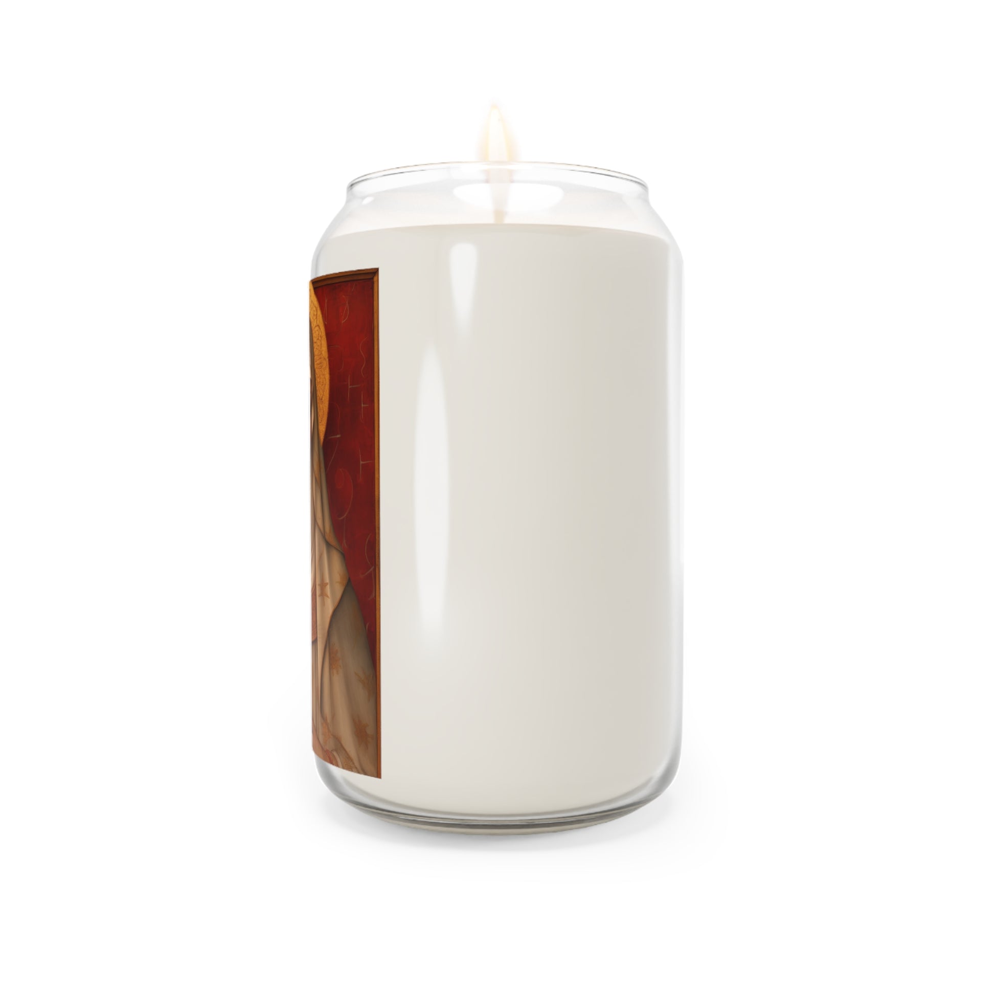Welcome to Sanctified Souls Shop, where divine illumination meets aromatic tranquility. Experience the spiritual essence with this scented prayer candles featuring saints or Divine figures who inspire and guide us on our sacred journey. Each candle in our collection is thoughtfully designed. Made with a 100% natural soy wax blend, these scented candles feature a 100% cotton wick and deliver 70-80 hours of blissful relaxation. For best results, burn candle 3 to 4 hours of each lighting and trim wick to 1/4". Discontinue use with 1/2" of wax remaining.