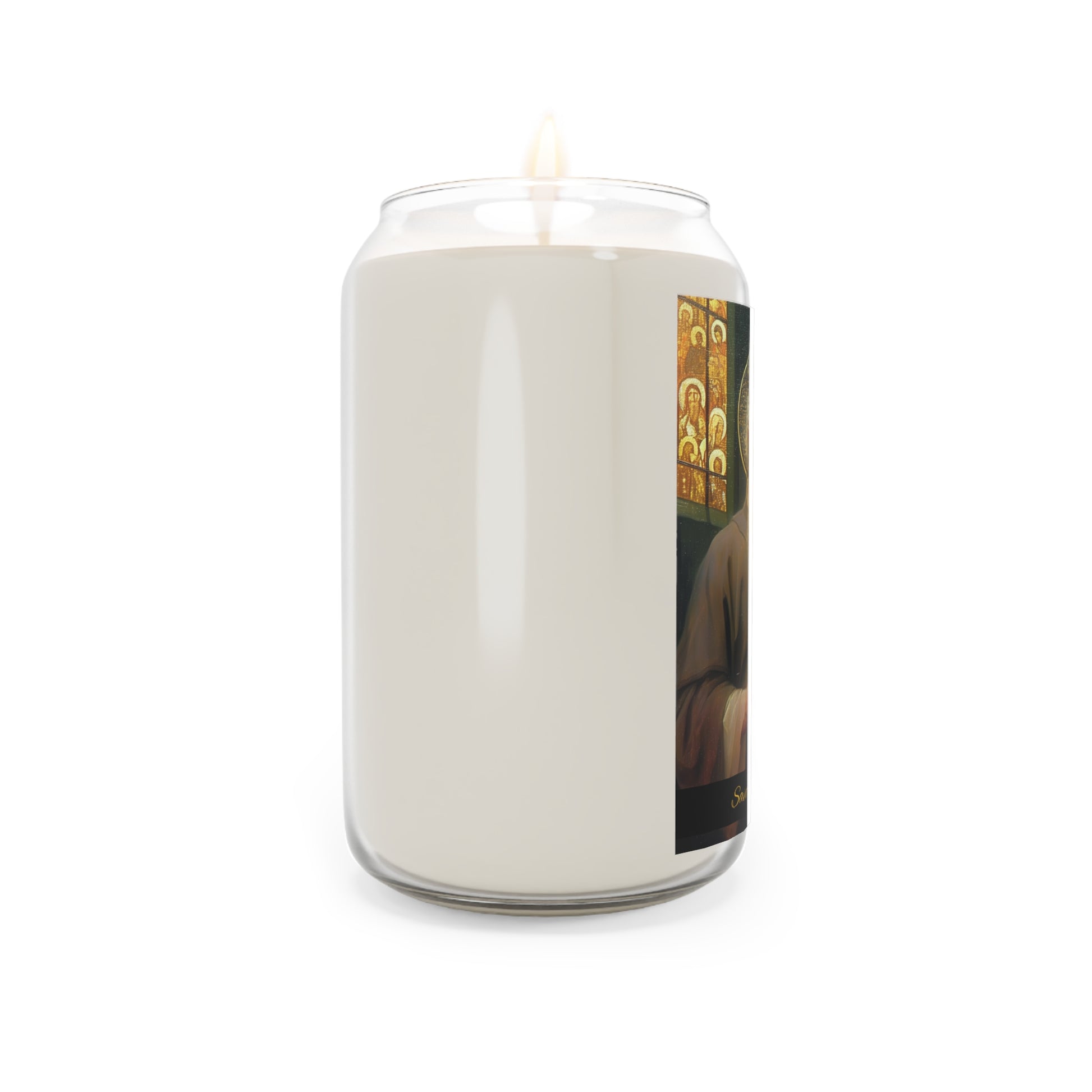 Welcome to Sanctified Souls Shop, where divine illumination meets aromatic tranquility. Experience the spiritual essence with this scented prayer candles featuring saints or Divine figures who inspire and guide us on our sacred journey. Each candle in our collection is thoughtfully designed. Made with a 100% natural soy wax blend, these scented candles feature a 100% cotton wick and deliver 70-80 hours of blissful relaxation. For best results, burn candle 3 to 4 hours of each lighting and trim wick to 1/4". Discontinue use with 1/2" of wax remaining.