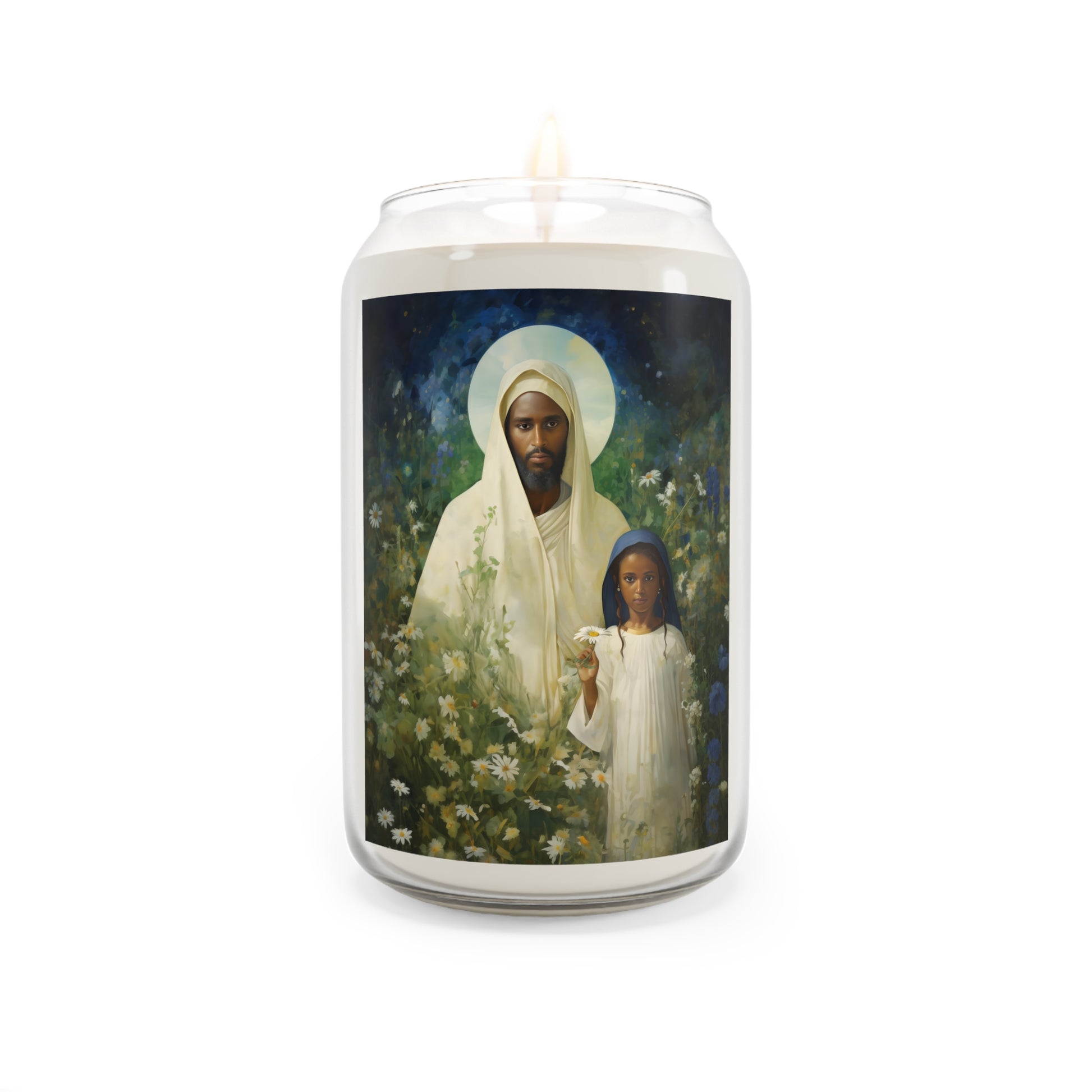 Welcome to Sanctified Souls Shop, where divine illumination meets aromatic tranquility. Experience the spiritual essence with this scented prayer candles featuring saints or Divine figures who inspire and guide us on our sacred journey. Each candle in our collection is thoughtfully designed. Made with a 100% natural soy wax blend, these scented candles feature a 100% cotton wick and deliver 70-80 hours of blissful relaxation. For best results, burn candle 3 to 4 hours of each lighting and trim wick to 1/4". Discontinue use with 1/2" of wax remaining.