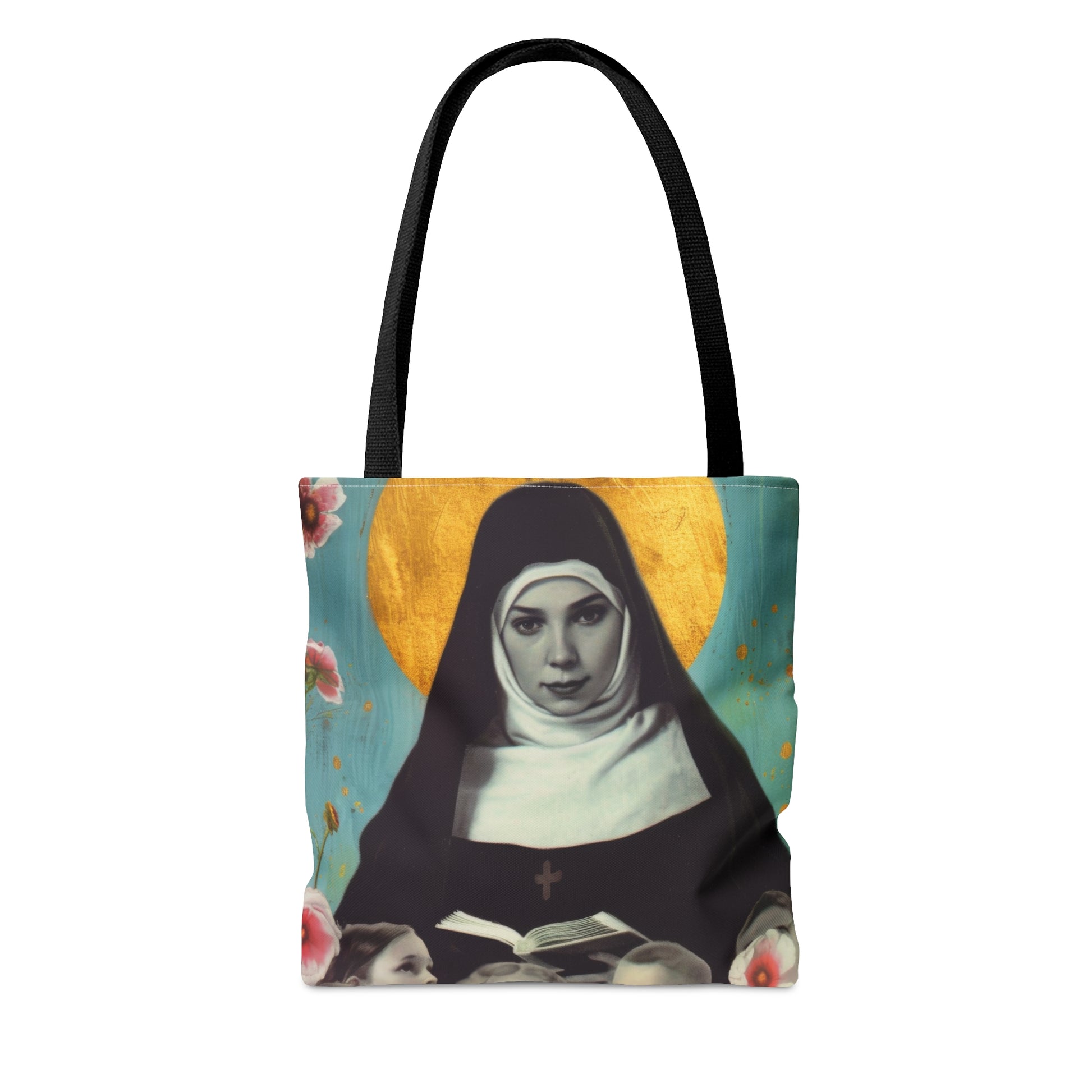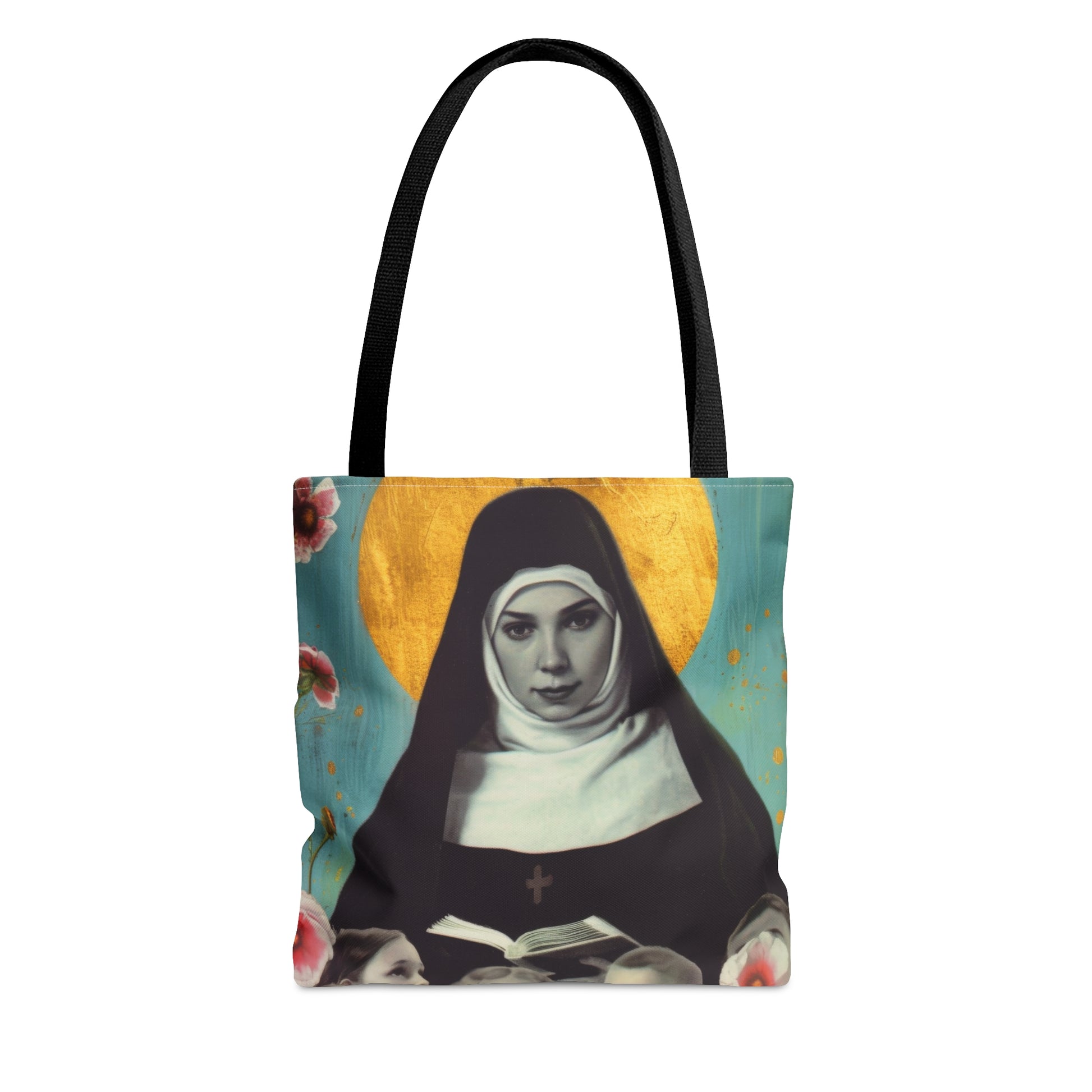 Welcome to Sanctified Souls Shop, where faith and art come together to create inspiring tote bags. Embrace the transformative presence of our extraordinary tote bag inspired by a Saint or Divine Figure. This bag is double sided All-Over-Print and features the same illustration on both sides. This practical, high-quality Tote Bag is available in three sizes.