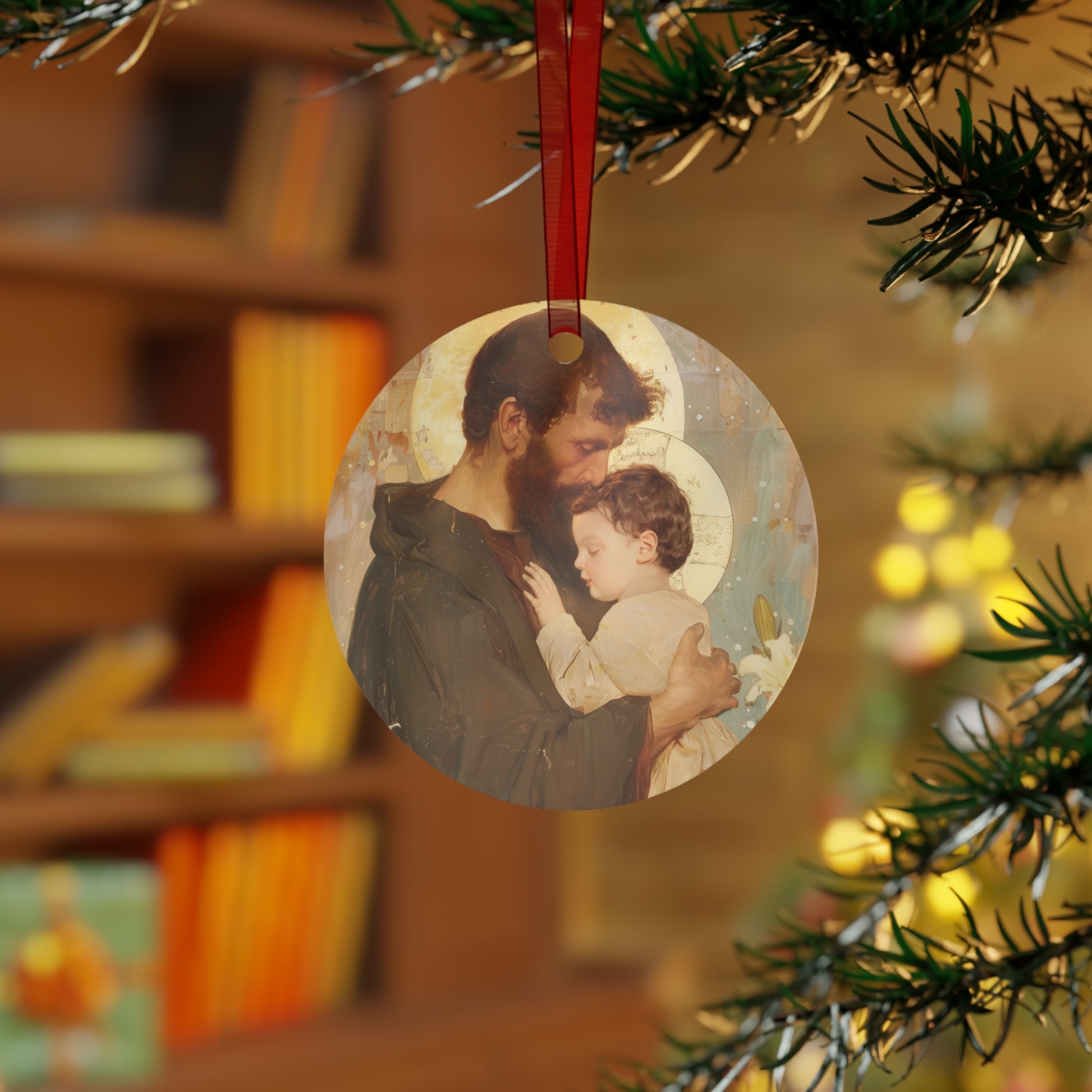 Saint Joseph and the Christ Child Metal Ornament - Religious Holiday Christmas Ornament and Keepsake - Double sided - Prayer Ornament