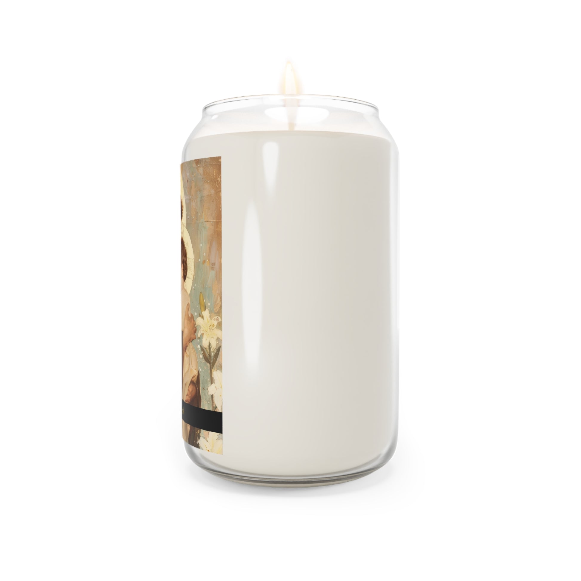 Welcome to Sanctified Souls Shop, where divine illumination meets aromatic tranquility. Experience the spiritual essence with this scented prayer candles featuring saints or Divine figures who inspire and guide us on our sacred journey. Each candle in our collection is thoughtfully designed. Made with a 100% natural soy wax blend, these scented candles feature a 100% cotton wick and deliver 70-80 hours of blissful relaxation. For best results, burn candle 3 to 4 hours of each lighting and trim wick to 1/4". Discontinue use with 1/2" of wax remaining.
