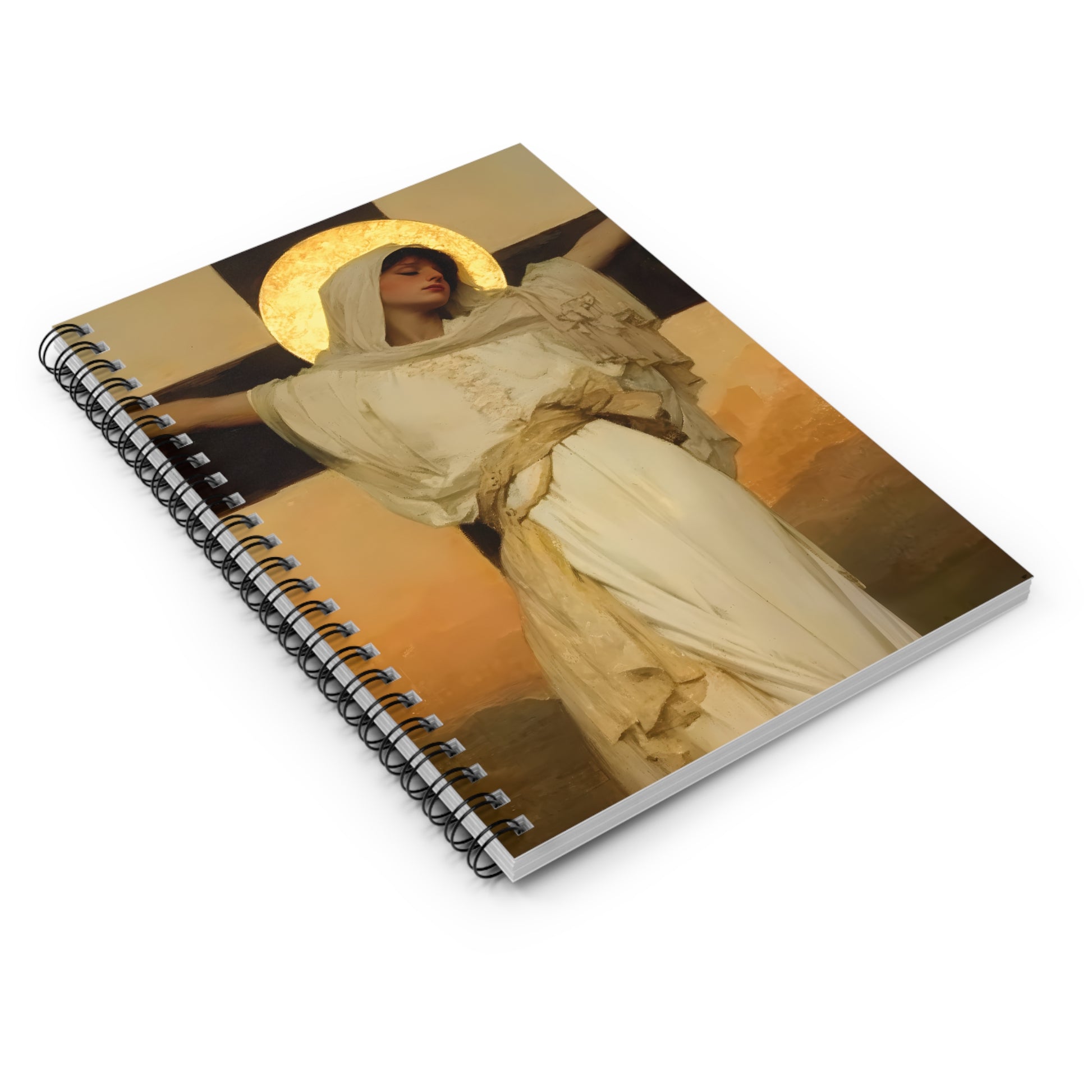 Each notebook features a cover adorned with a depiction of a saint, holy figure or religious relic, carefully selected to ignite your faith and provide a source of inspiration in your daily life. These notebooks are more than just a place to jot down your thoughts; they are a gateway to connecting with the spiritual realm. The smooth, spiral-bound design ensures easy flipping of pages and allows the notebook to lie flat for comfortable writing. Featuring high-quality, lined paper, you'll have ample space to record your prayers, reflections, and aspirations.