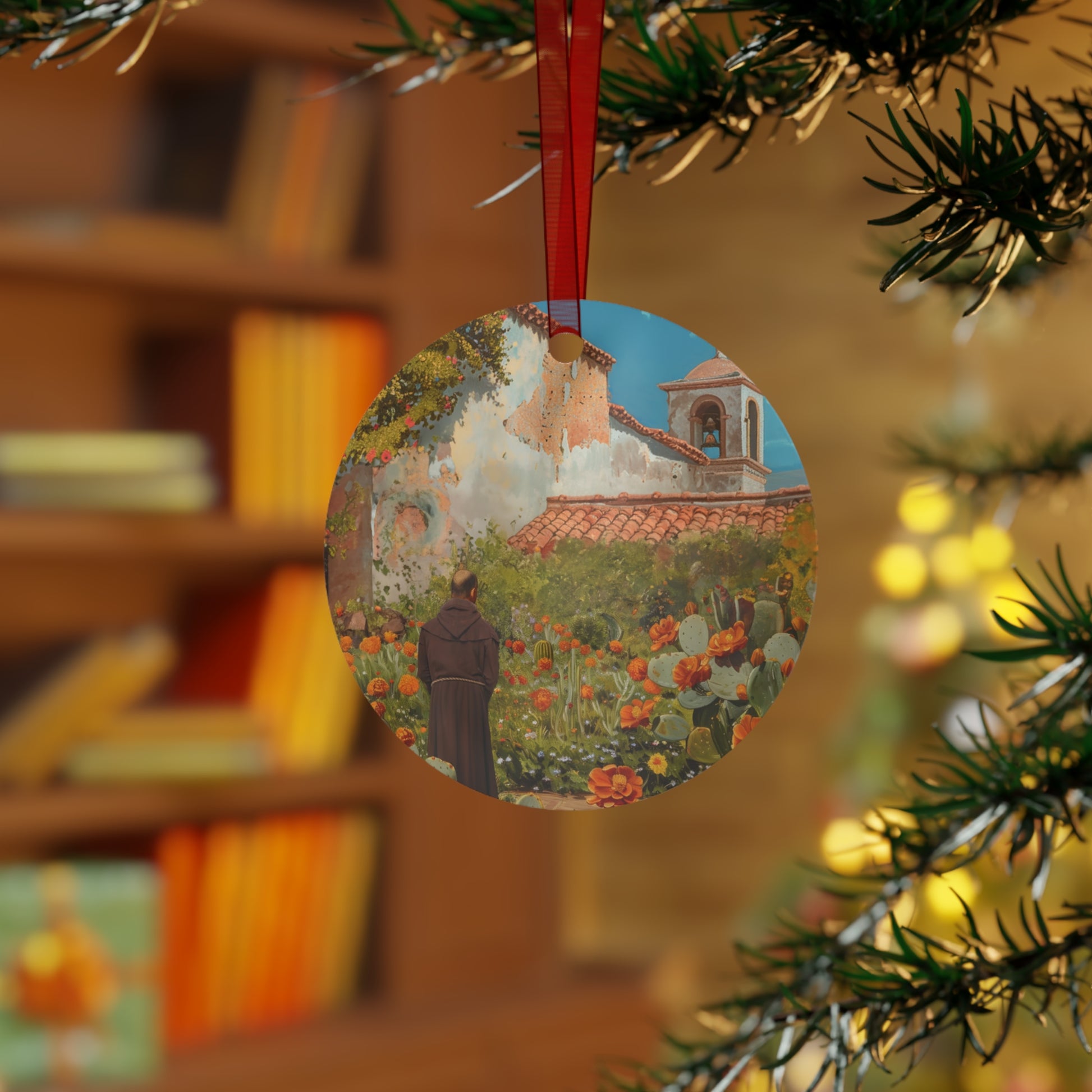 Saint Junípero Serra Metal Ornament - Religious Holiday Christmas Ornament and Keepsake - Double sided - Prayer - Santa Barbara Mission