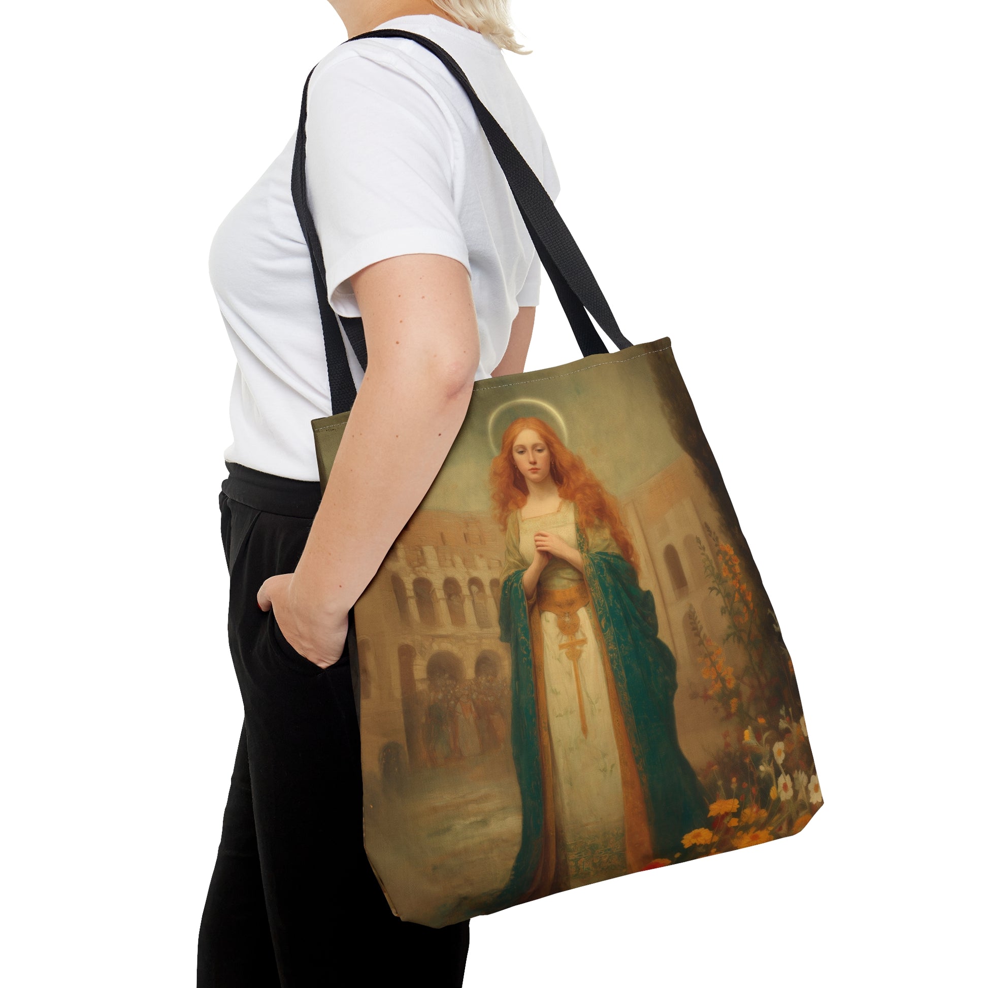 Saint Justina - Tote Bag - Large Medium Small Faith Art Bag - Bible Study Faith Purse - Double Sided Prayer Tote