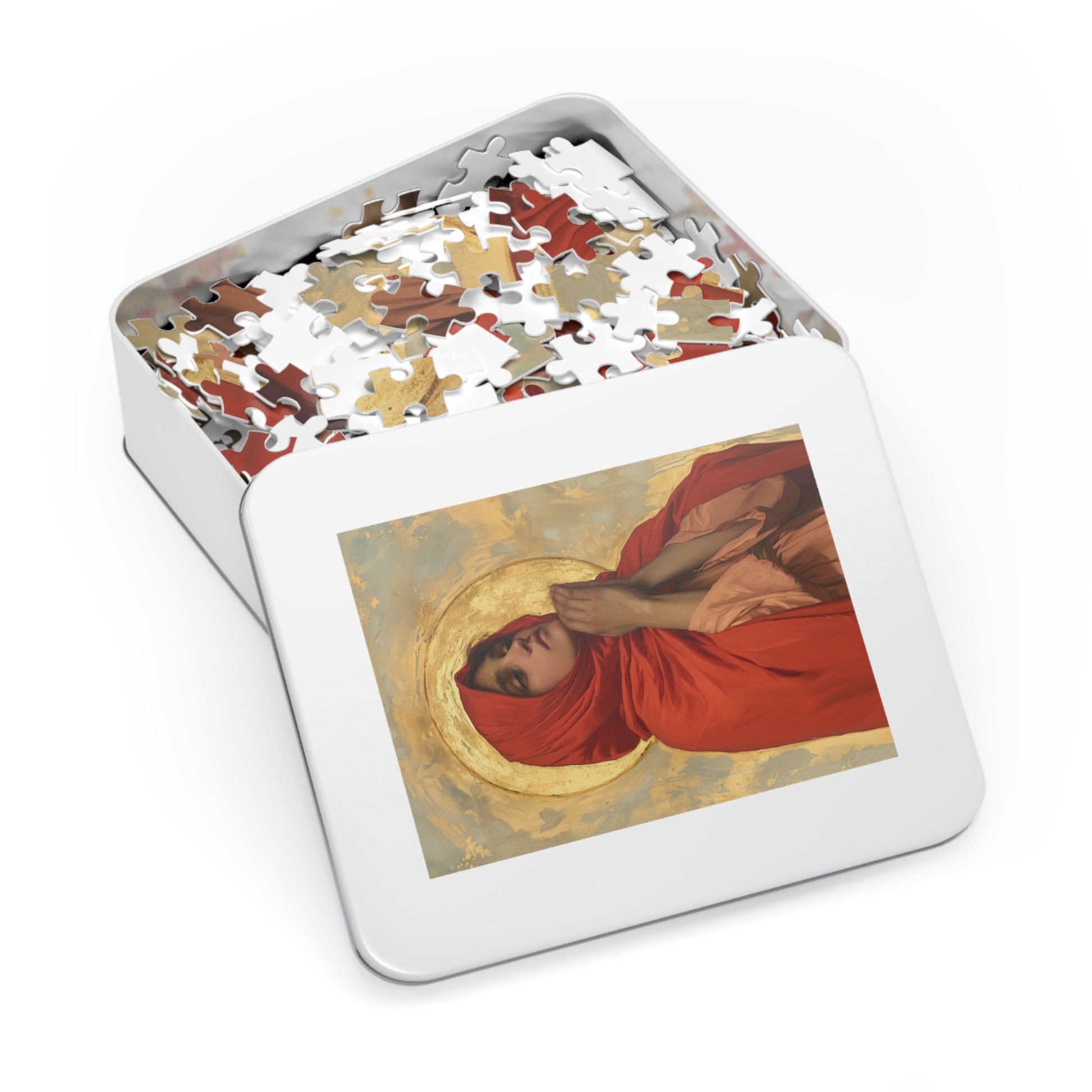 Immerse yourself in the inspiring stories and spiritual journeys of these revered individuals with our extraordinary saint-themed puzzles. Each puzzle is a gateway to contemplation, inviting you to engage in a meditative experience that celebrates the devotion and legacy of these holy figures. Made with high-quality chipboard pieces, this puzzle comes in 30, 110, 252, 500, and 1000-piece variations. The 252 and 500-piece puzzles are ideal for children from the age of 9, while the 1000-piece puzzle is great for adults. Ships in gift-ready metal boxes for a show-stopping presentation.