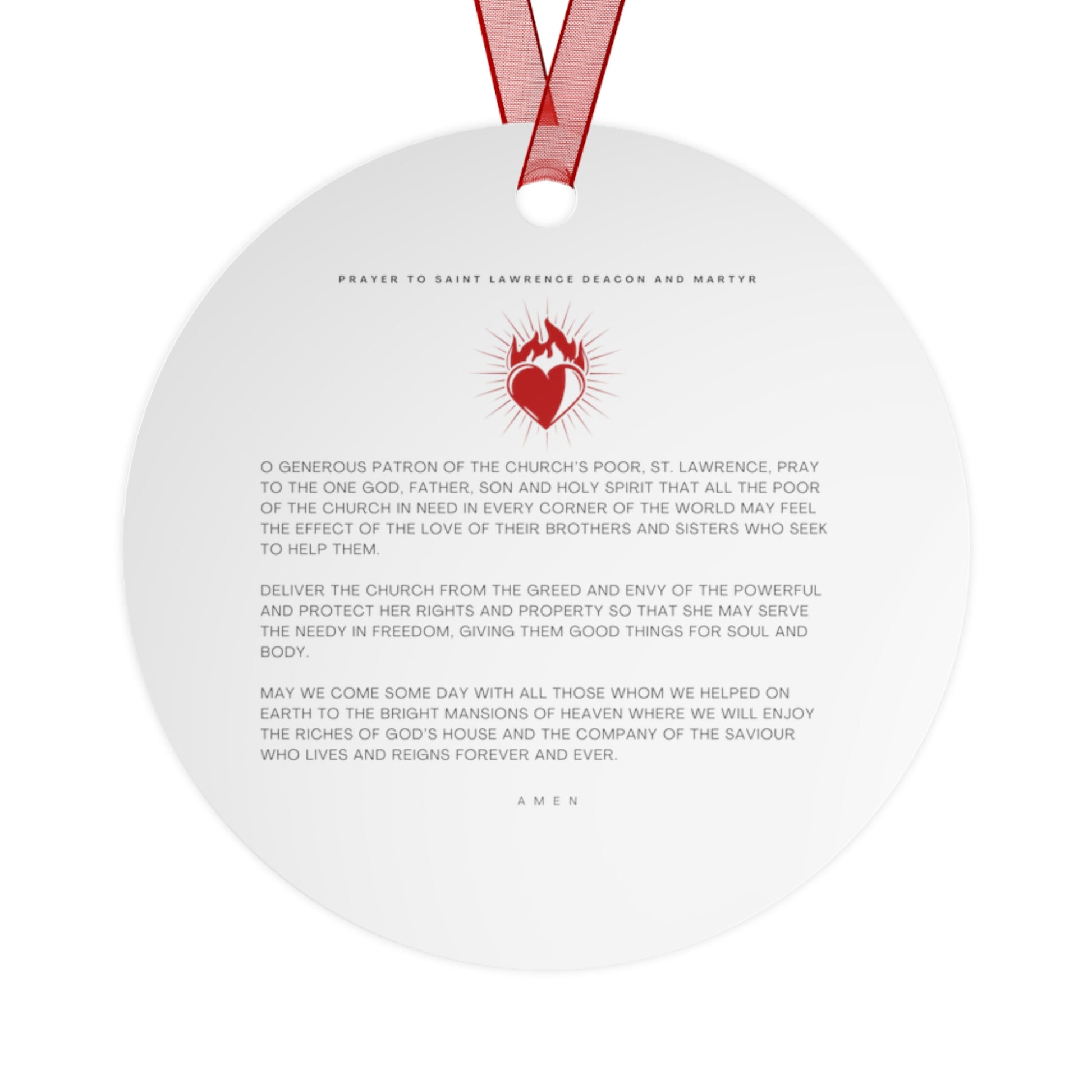Saint Lawrence Deacon and Martyr Metal Ornament - Religious Holiday Christmas Ornament and Keepsake - Double sided - Prayer Ornament