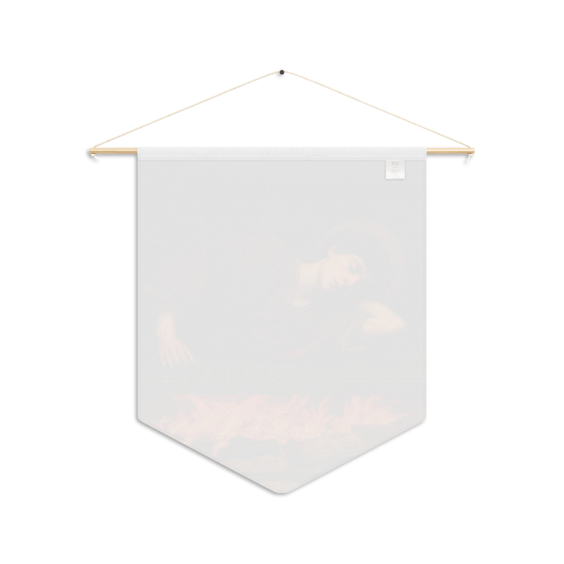 Immerse your space in the divine presence with our exquisite Wall Hanging/Pennant/Banner, adorned with the image of one of my saints or divine figure portraits. Each detail of this sacred artwork resonates with spiritual significance, offering a profound connection to the eternal wisdom and grace embodied by the chosen saint. This pennant comes with a wooden dowel for easy hanging.