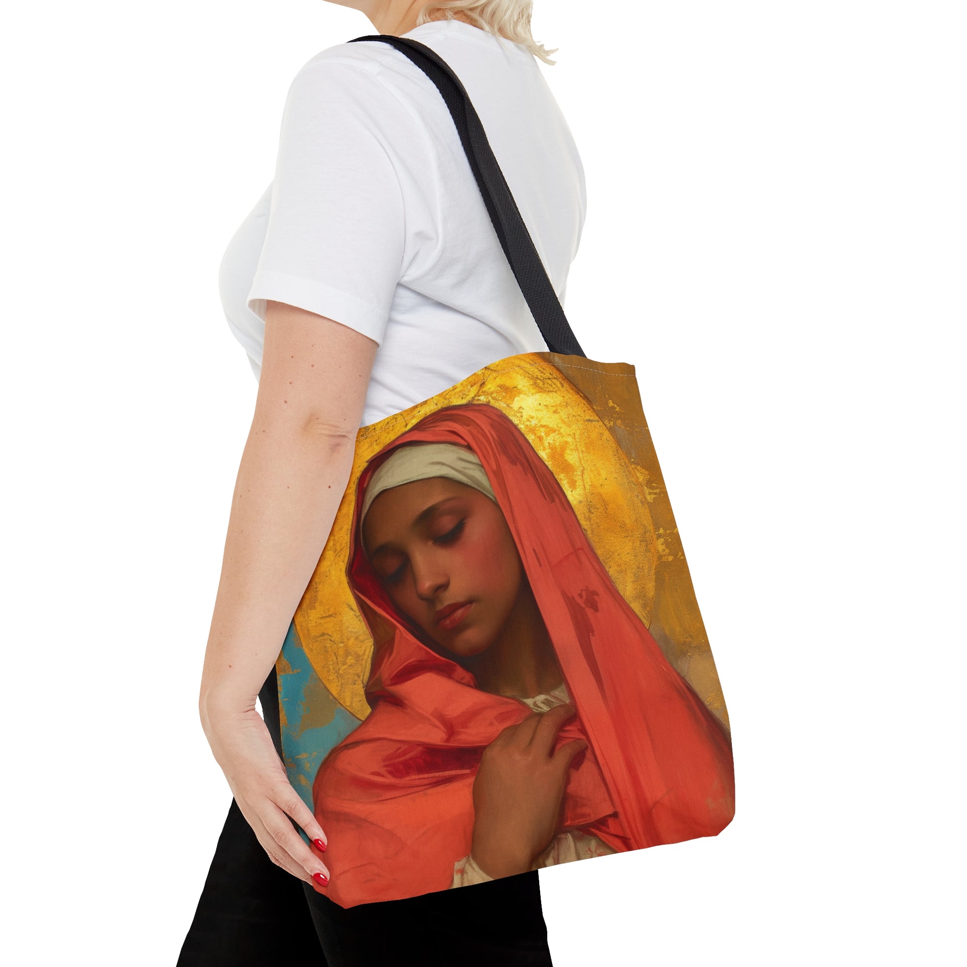 Welcome to Sanctified Souls Shop, where faith and art come together to create inspiring tote bags. Embrace the transformative presence of our extraordinary tote bag inspired by a Saint or Divine Figure. This bag is double sided All-Over-Print and features the same illustration on both sides. This practical, high-quality Tote Bag is available in three sizes.