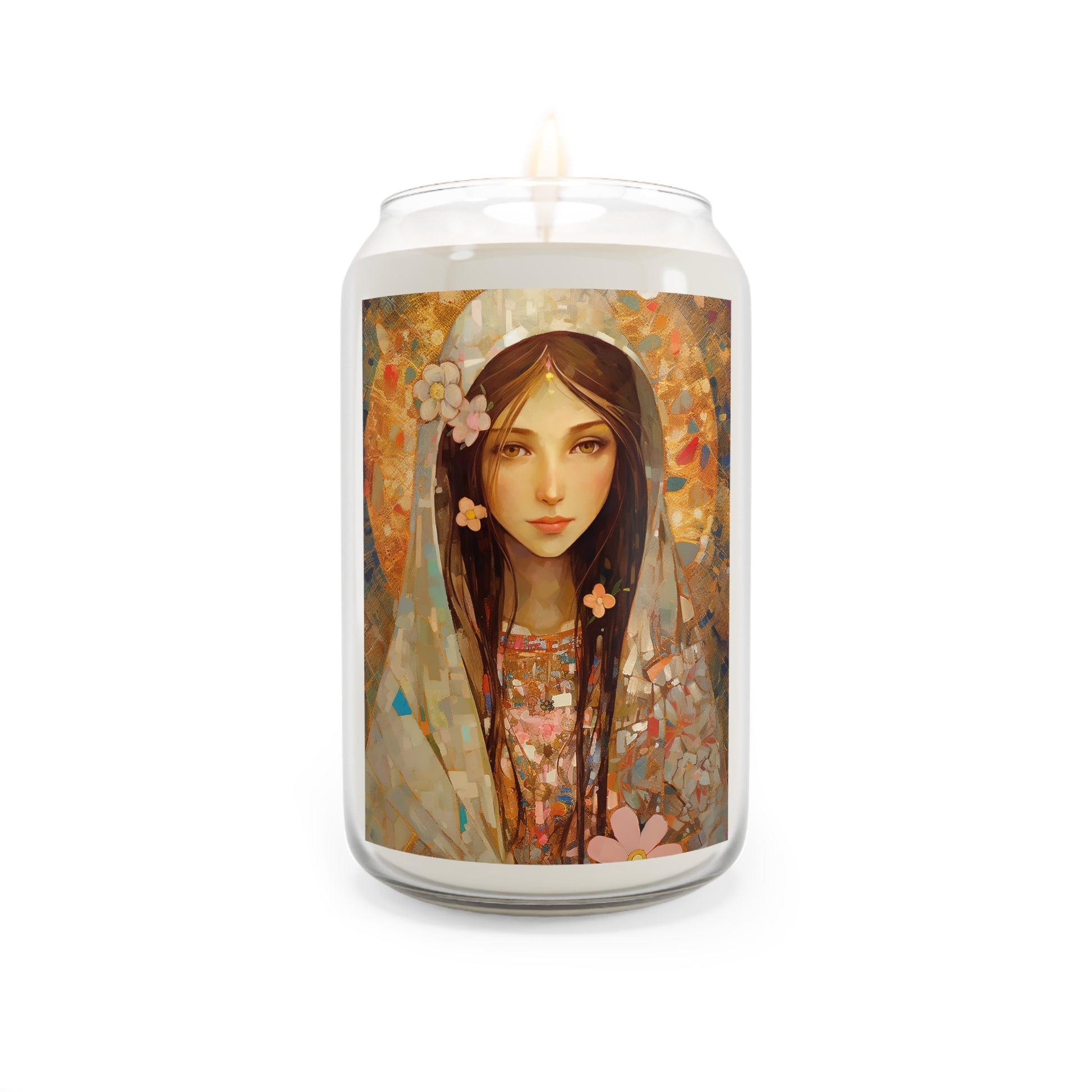 Welcome to Sanctified Souls Shop, where divine illumination meets aromatic tranquility. Experience the spiritual essence with this scented prayer candles featuring saints or Divine figures who inspire and guide us on our sacred journey. Each candle in our collection is thoughtfully designed. Made with a 100% natural soy wax blend, these scented candles feature a 100% cotton wick and deliver 70-80 hours of blissful relaxation. For best results, burn candle 3 to 4 hours of each lighting and trim wick to 1/4". Discontinue use with 1/2" of wax remaining.