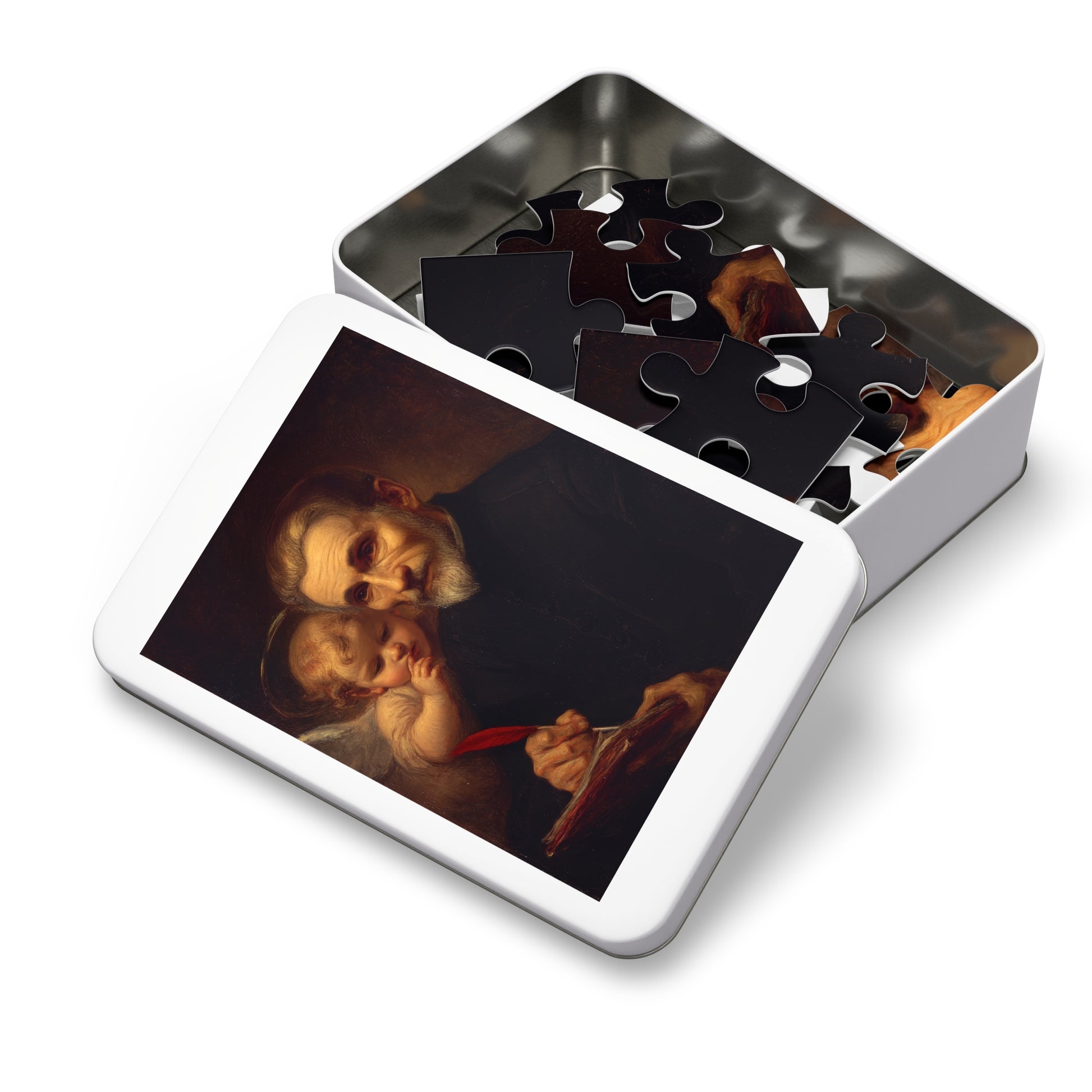 Immerse yourself in the inspiring stories and spiritual journeys of these revered individuals with our extraordinary saint-themed puzzles. Each puzzle is a gateway to contemplation, inviting you to engage in a meditative experience that celebrates the devotion and legacy of these holy figures. Made with high-quality chipboard pieces, this puzzle comes in 30, 110, 252, 500, and 1000-piece variations. The 252 and 500-piece puzzles are ideal for children from the age of 9, while the 1000-piece puzzle is great for adults. Ships in gift-ready metal boxes for a show-stopping presentation.