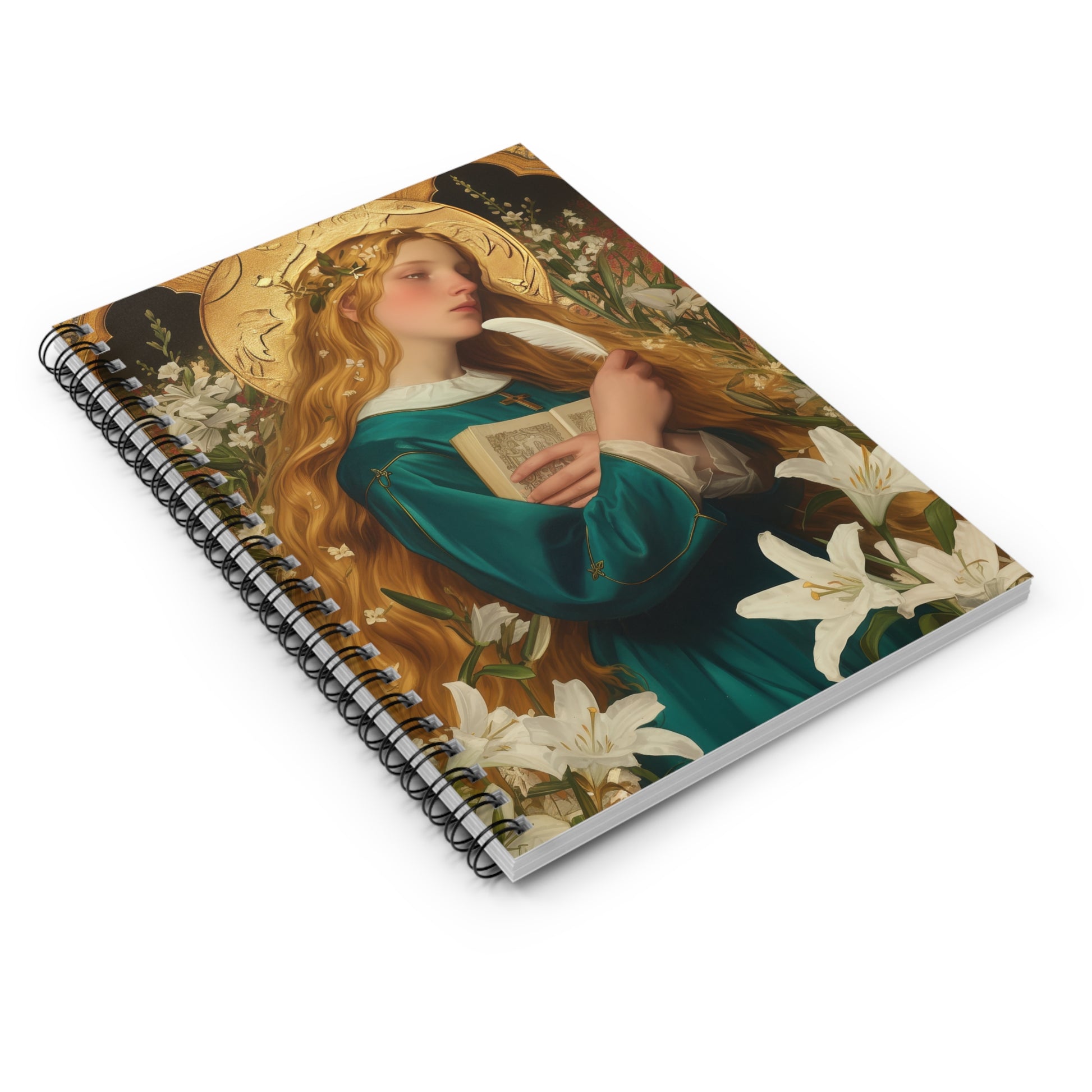 Welcome to Sanctified Souls, this listing is for one a spiral lined notebook inspired by the extraordinary lives of saints! These notebooks are meticulously crafted to provide you with a perfect blend of functionality and spiritual inspiration