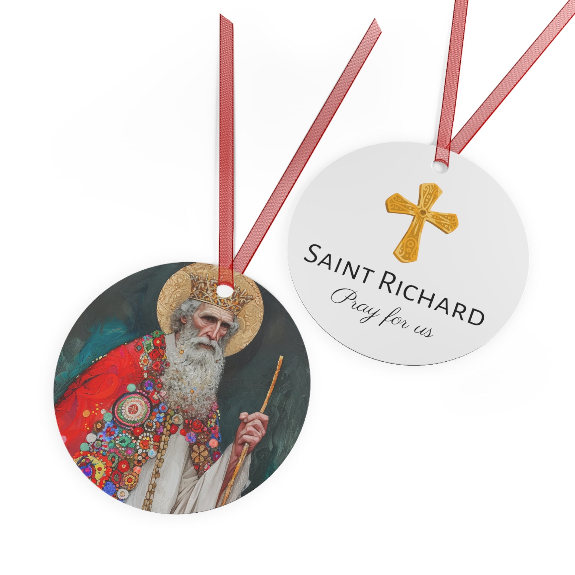 Saint Richard the Pilgrim / Richard of Wessex Metal Ornament - Religious Holiday Christmas Ornament and Keepsake - Double sided
