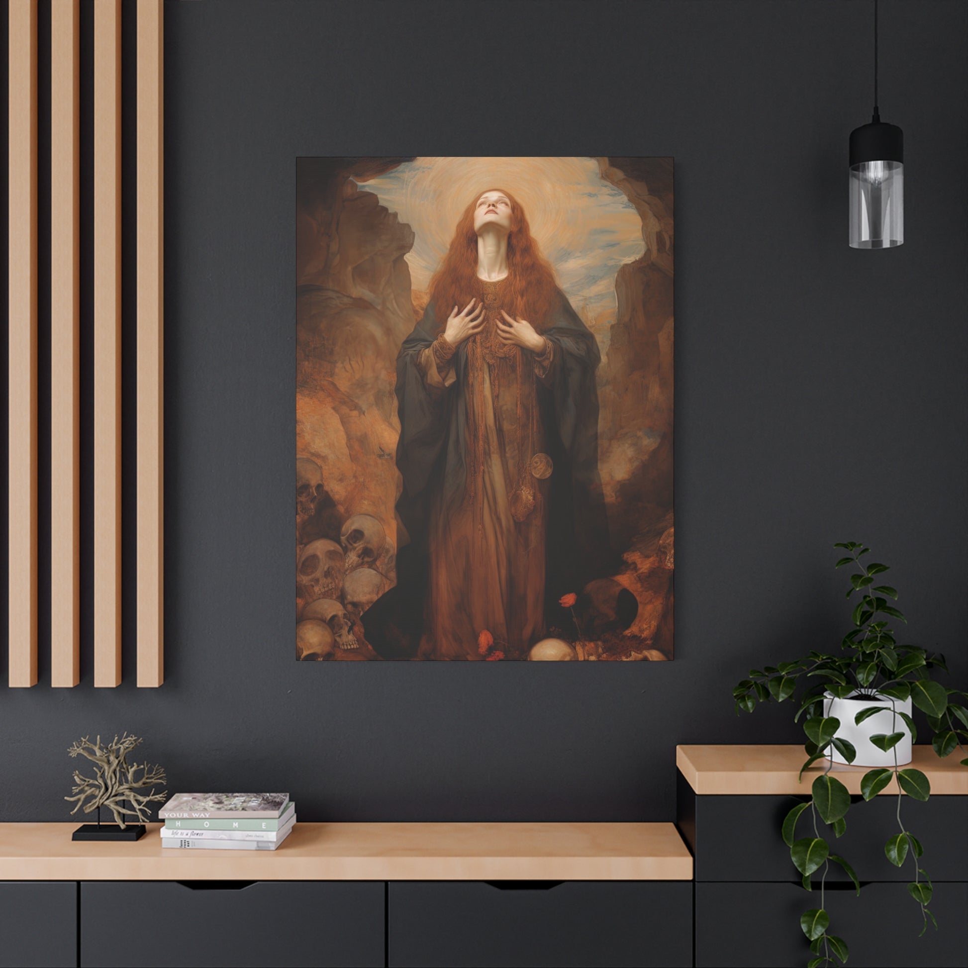Hang this canvas print in your home, prayer room, or sacred space, and let the transformative power of the saint's image inspire your thoughts, nurture your faith, and deepen your spiritual connection. Each gaze upon this captivating artwork becomes a moment of reflection, inviting you to seek the saint's intercession and emulate their virtues in your own life.