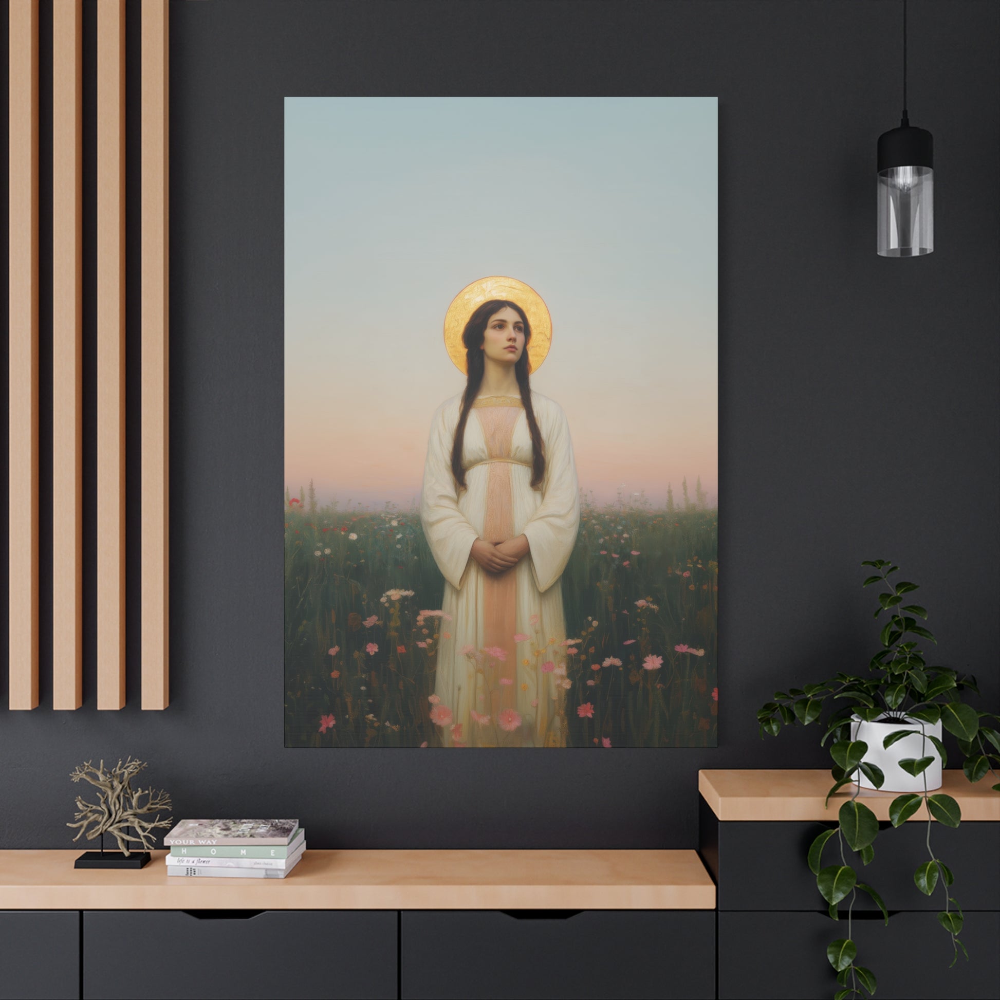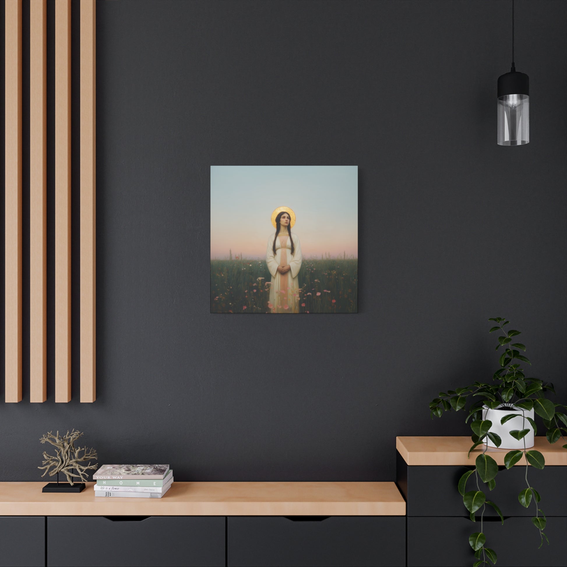 Hang this canvas print in your home, prayer room, or sacred space, and let the transformative power of the saint's image inspire your thoughts, nurture your faith, and deepen your spiritual connection. Each gaze upon this captivating artwork becomes a moment of reflection, inviting you to seek the saint's intercession and emulate their virtues in your own life.