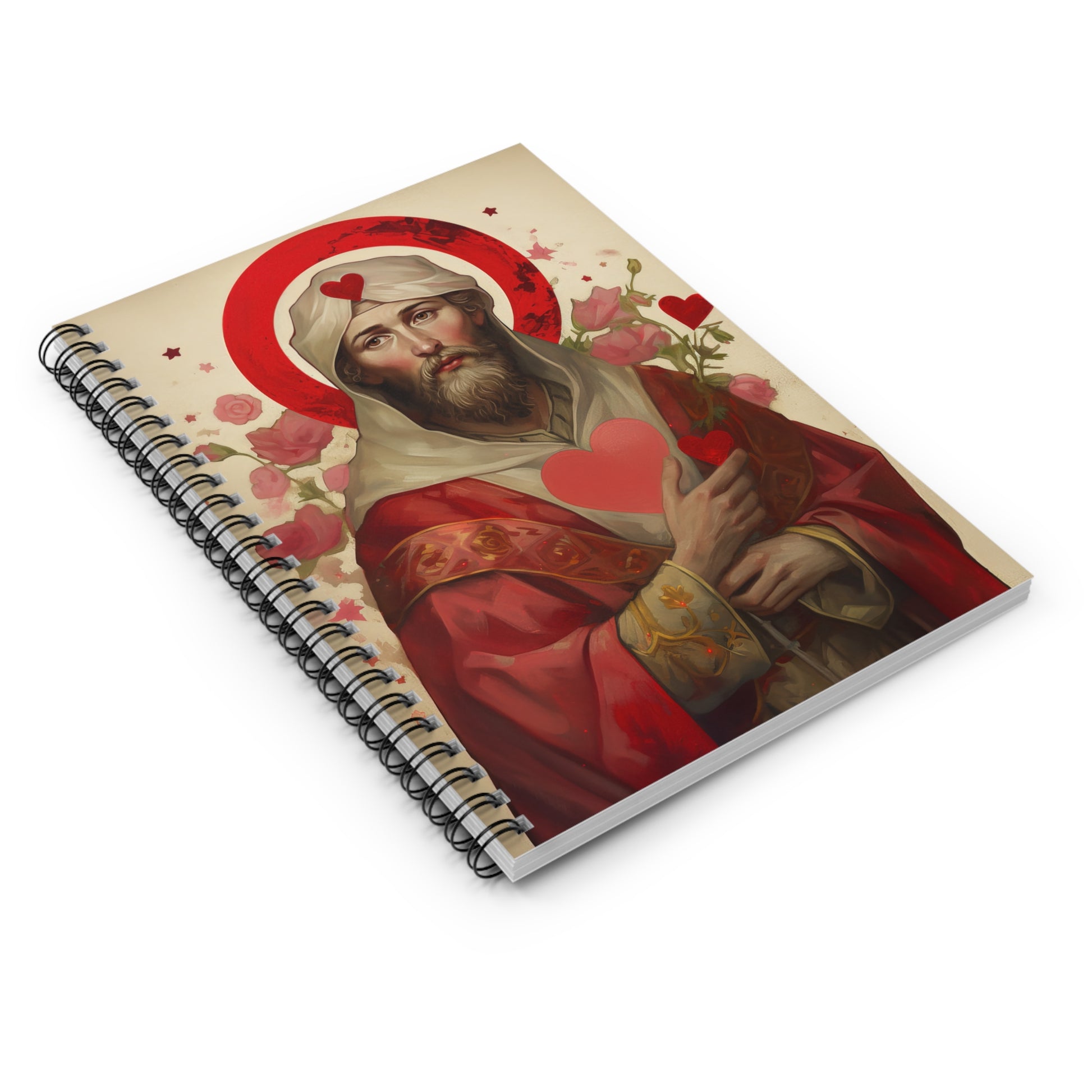 Saint Valentine Journal - Sanctified Souls Art - Religious Based Notebook - Spiral Notebook - Ruled Line