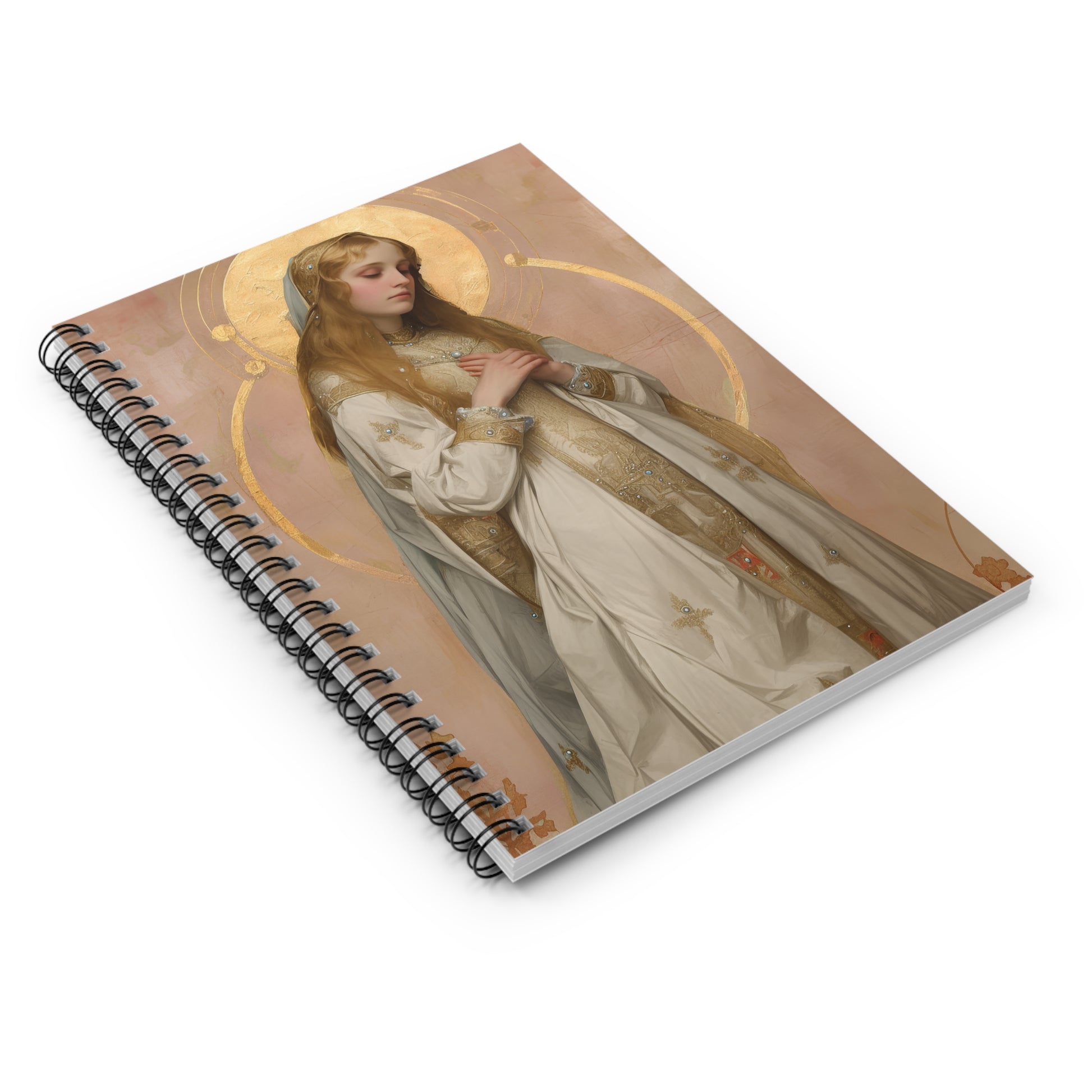 Each notebook features a cover adorned with a depiction of a saint, holy figure or religious relic, carefully selected to ignite your faith and provide a source of inspiration in your daily life. These notebooks are more than just a place to jot down your thoughts; they are a gateway to connecting with the spiritual realm. The smooth, spiral-bound design ensures easy flipping of pages and allows the notebook to lie flat for comfortable writing. Featuring high-quality, lined paper, you'll have ample space to record your prayers, reflections, and aspirations.